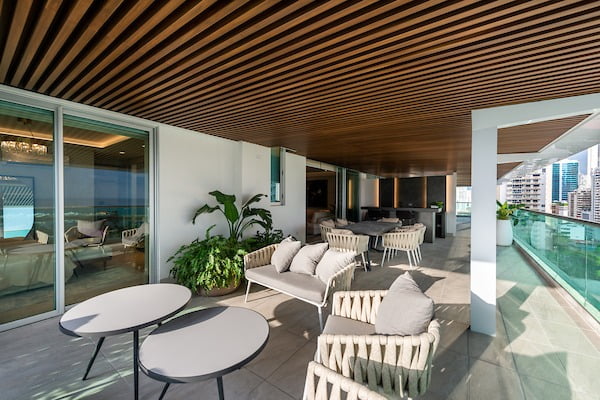 Every living room is bright and airy with a large balcony overlooking the surrounding neighborhood of Bella Vista, Parque Urraca, the breathtaking Panama skyline, and the Pacific Ocean.