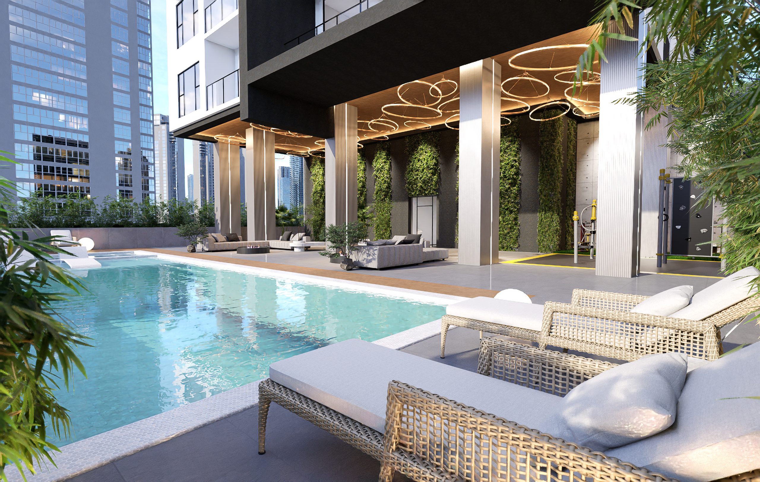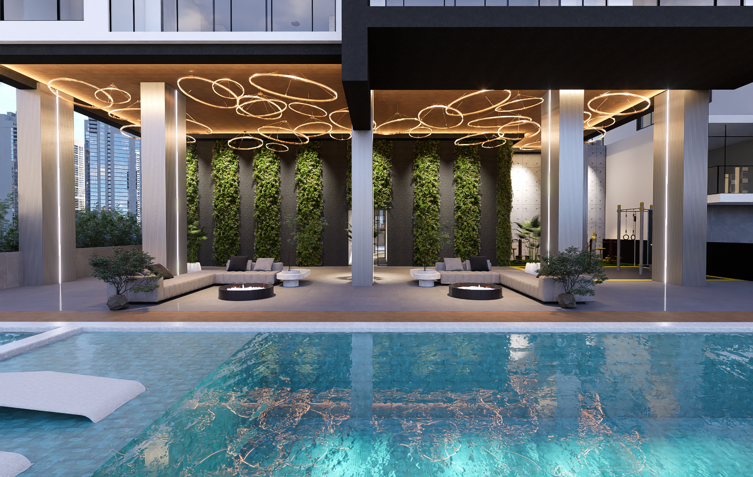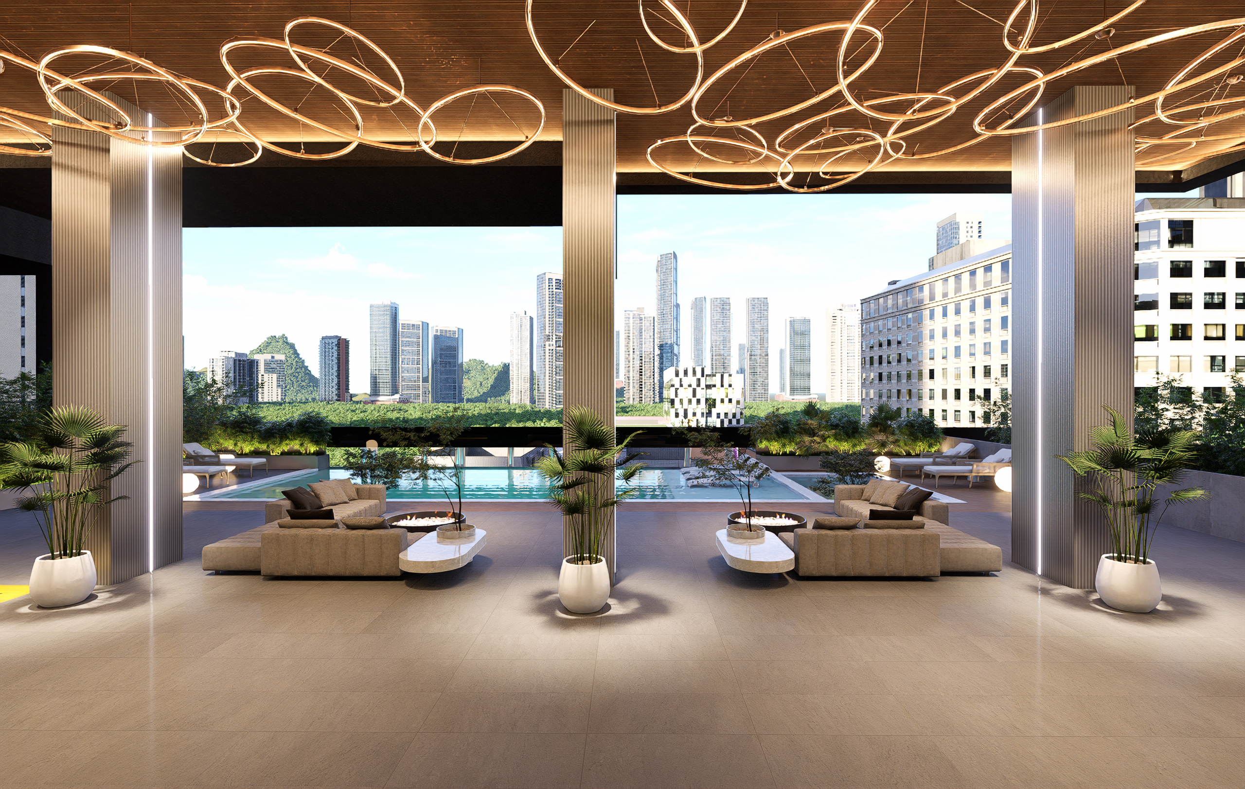 El edificio contará con cuatro niveles completos de amenidades compartidas, con una combinación de espacios para el uso diario y el tiempo libre, incluyendo piscina, gimnasio, cancha de pádel, sauna y múltiples áreas sociales y de descanso. El mantenimiento estimado es de $212 al mes.