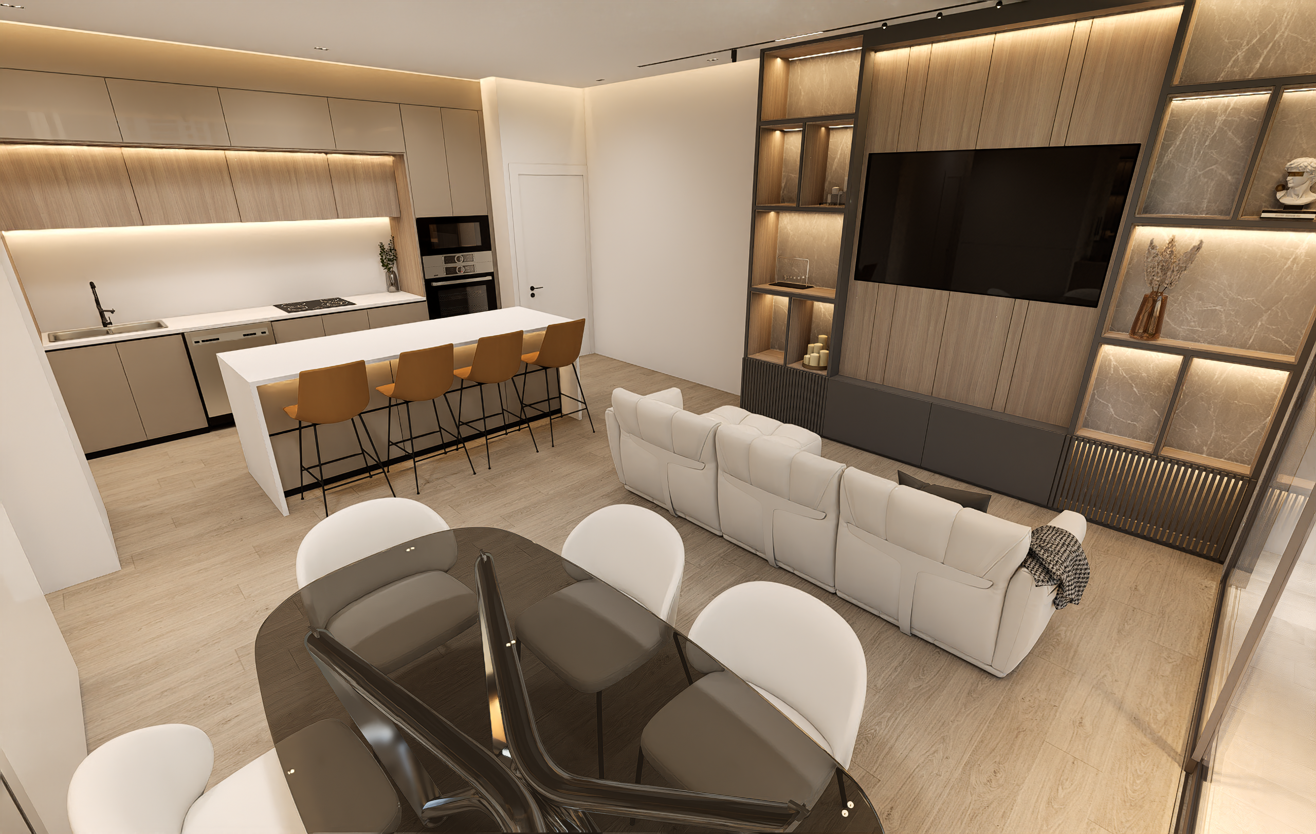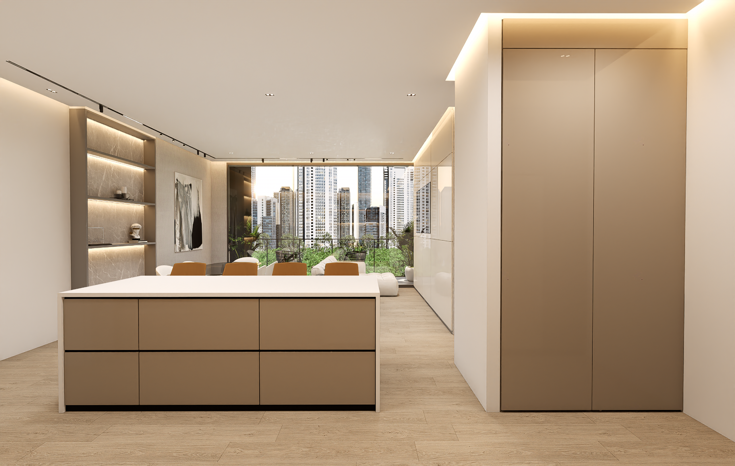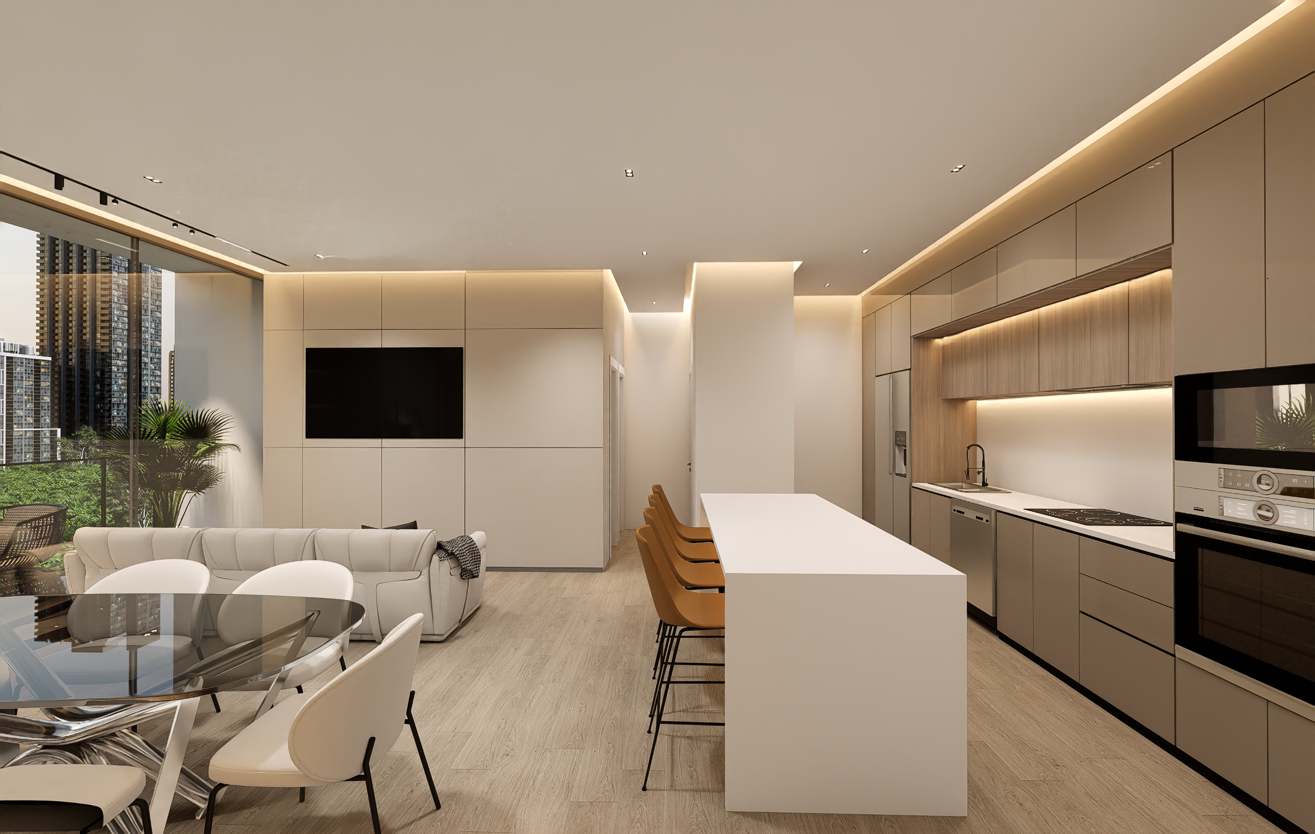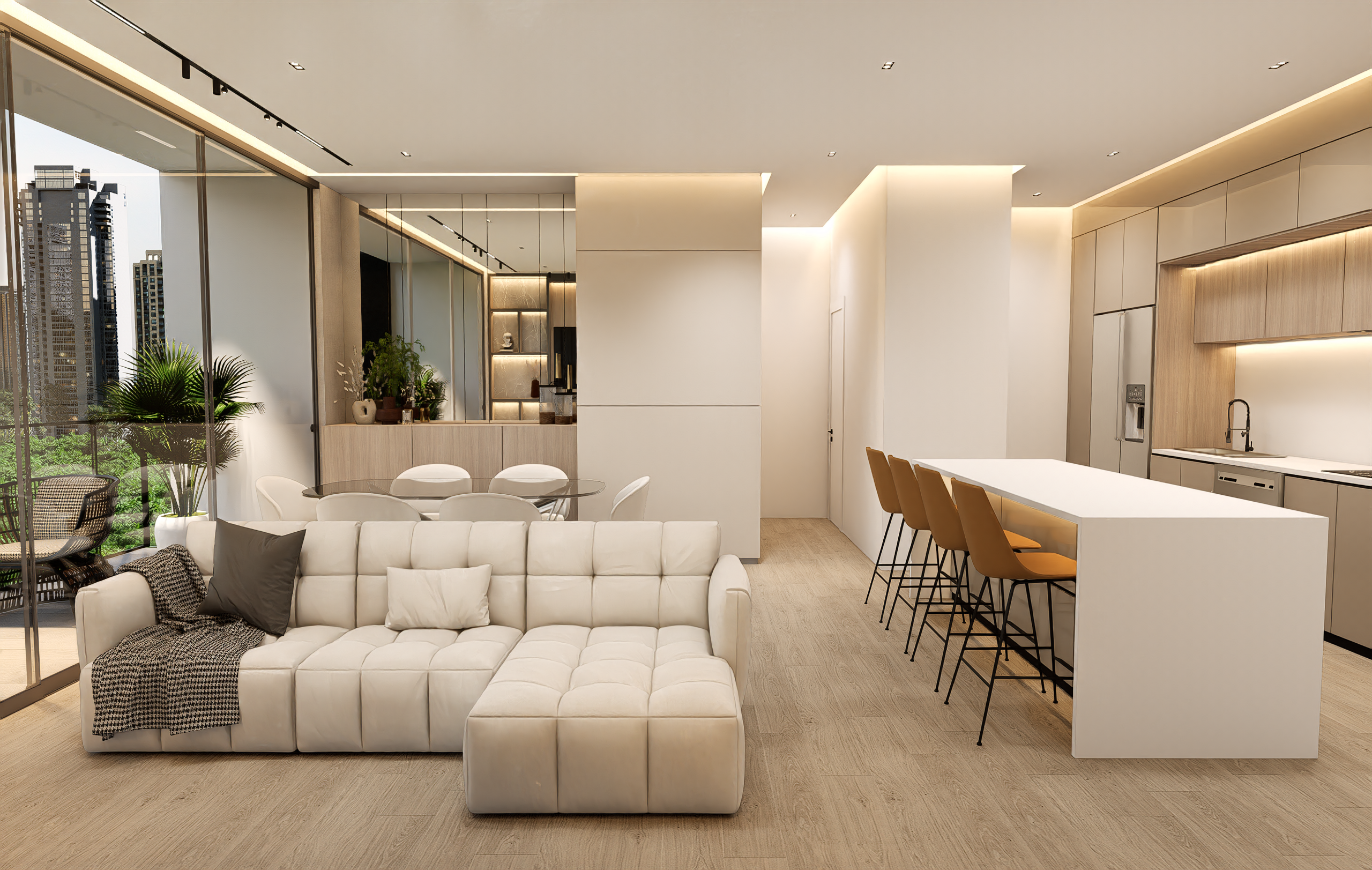 La distribución de estas unidades de dos recámaras con vista al parque es ordenada, elegante y moderna. Con una cocina abierta, un amplio balcón, recámaras espaciosas y una altura de piso a techo muy generosa, tiene todo lo que busca el comprador de hoy.