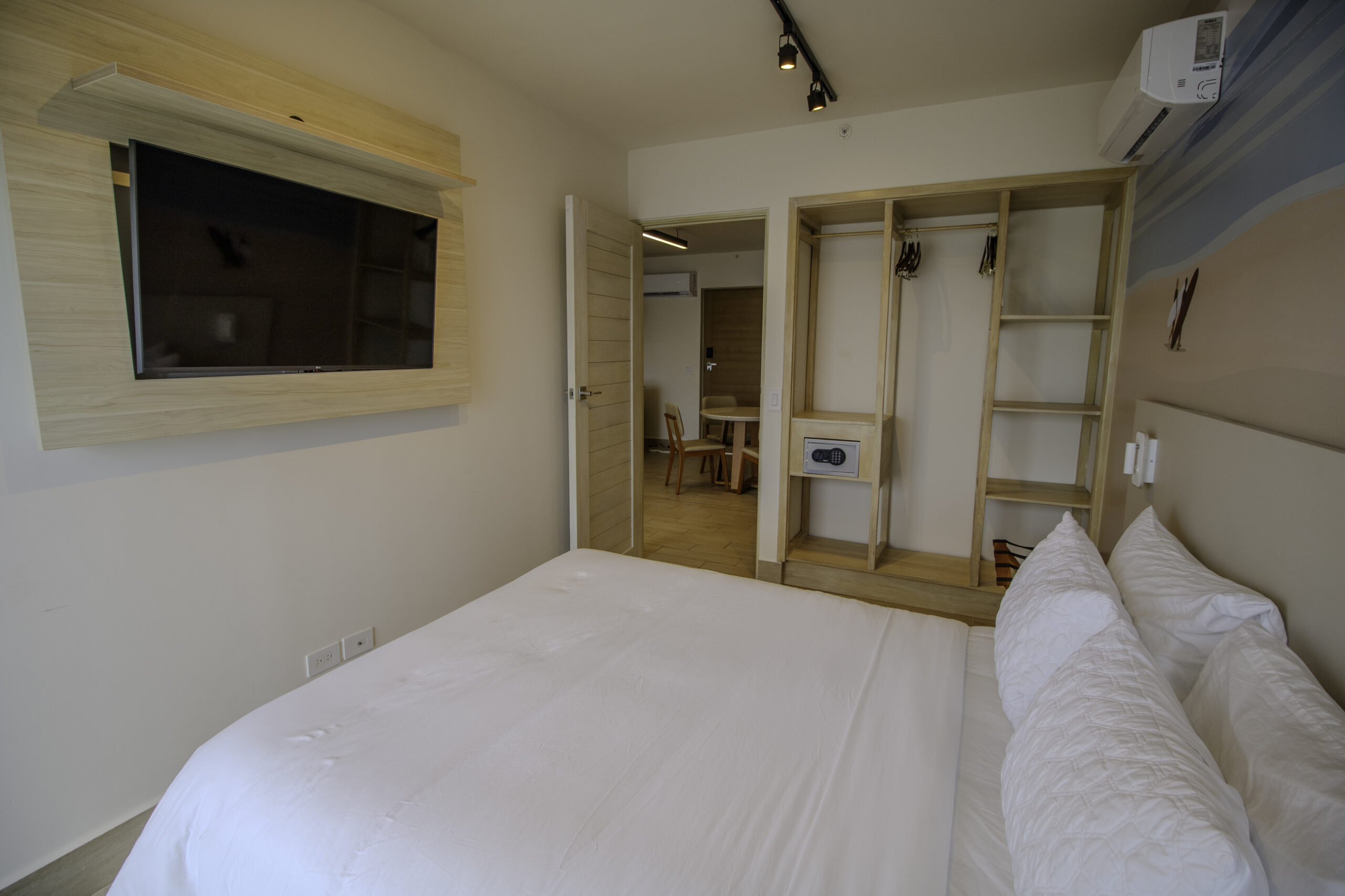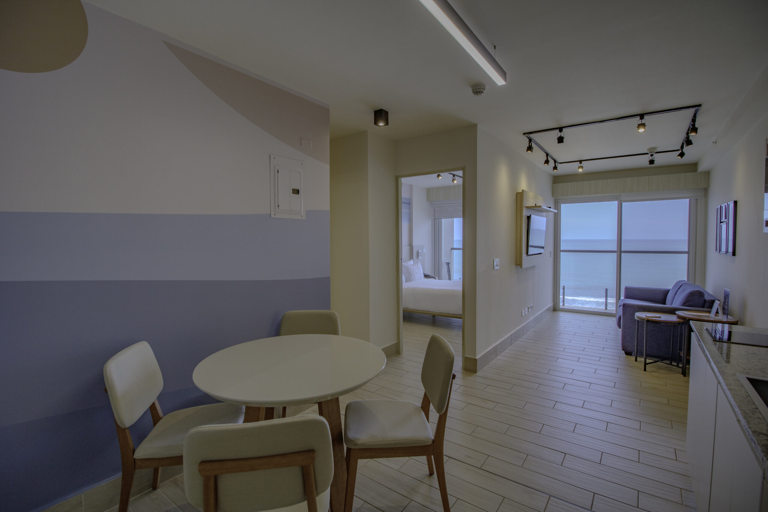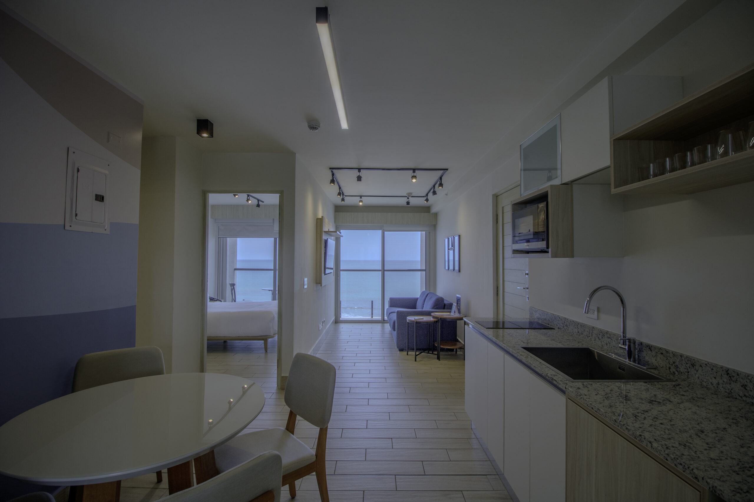 Una puerta comunicante conecta ambos espacios, ofreciendo la flexibilidad de mantenerlos separados o unirlos cuando sea necesario. El estudio más grande funciona bien como residencia principal o alquiler a largo plazo, mientras que el más pequeño es ideal para huéspedes o estancias cortas. Ambos se abren a un balcón compartido con vista parcial al mar e incluyen un estacionamiento asignado.