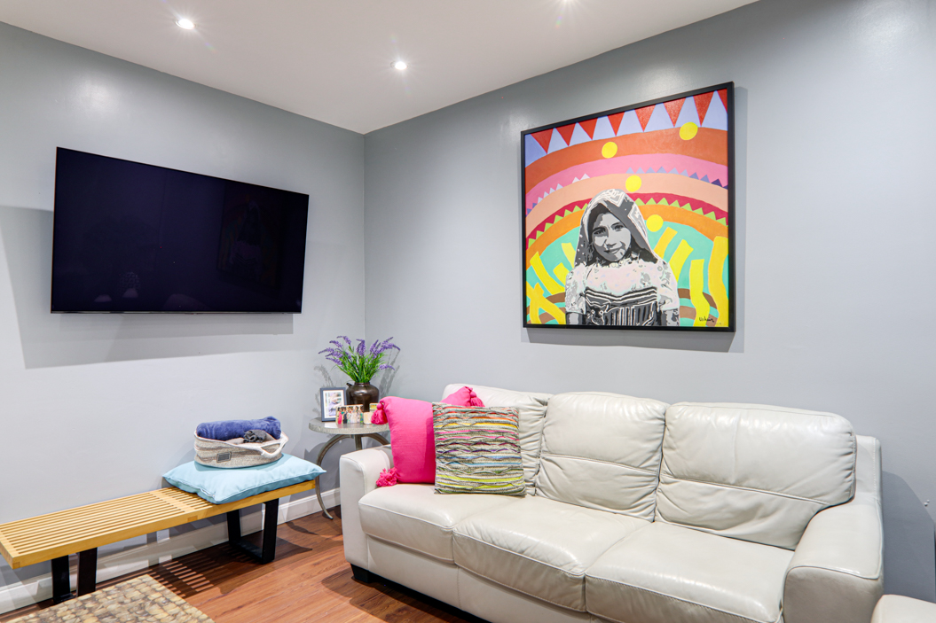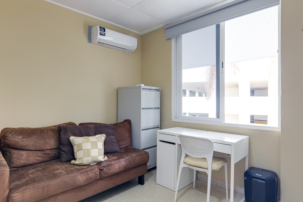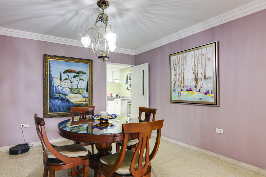 Este apartamento de tres habitaciones y dos baños tiene una distribución práctica que se siente cómoda desde el momento en que entras. La entrada se abre a un pequeño vestíbulo que conecta directamente con la sala y el comedor, creando una circulación fluida en todo el espacio. Justo al lado del área principal hay una sala familiar o estudio independiente que puede usarse como sala de TV, oficina en casa o espacio flexible.