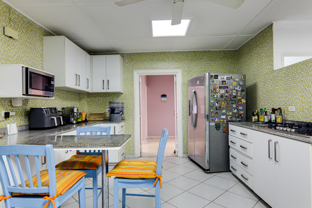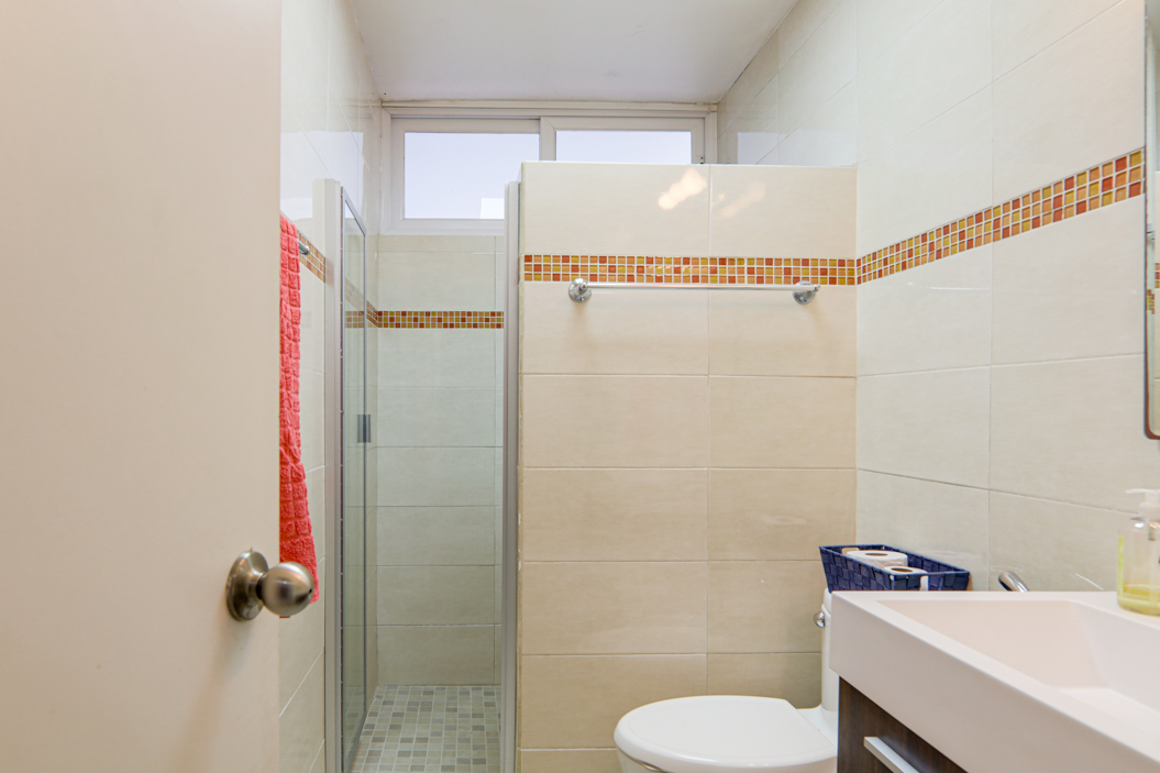 La cocina ofrece buen espacio de almacenamiento y encimeras, y se conecta con el área de lavandería que cuenta con espacio exterior para secado. Cerca se encuentran un cuarto y baño de servicio, lo que te brinda espacio adicional para almacenamiento u otros usos. El apartamento también cuenta con un balcón privado, un gran beneficio en La Cresta e ideal para algunas plantas o un pequeño espacio de descanso.
