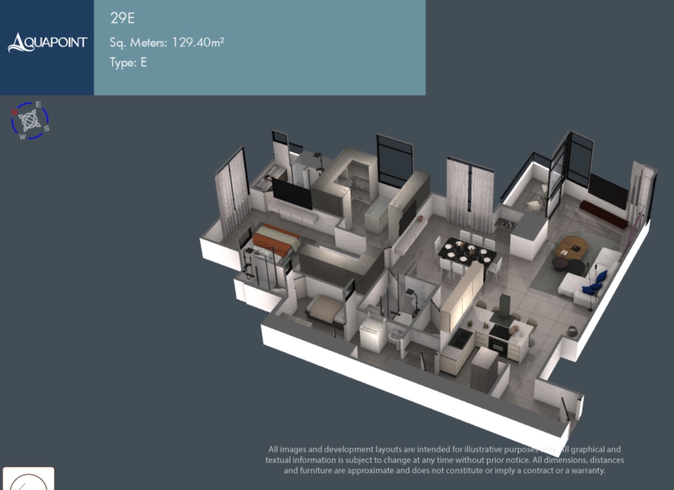 Las ventas en Aquapoint han avanzado rápidamente. Las unidades Modelo E disponibles se encuentran en su mayoría en pisos medios y altos, ofreciendo vistas abiertas, buena iluminación natural y el beneficio adicional de un balcón privado.