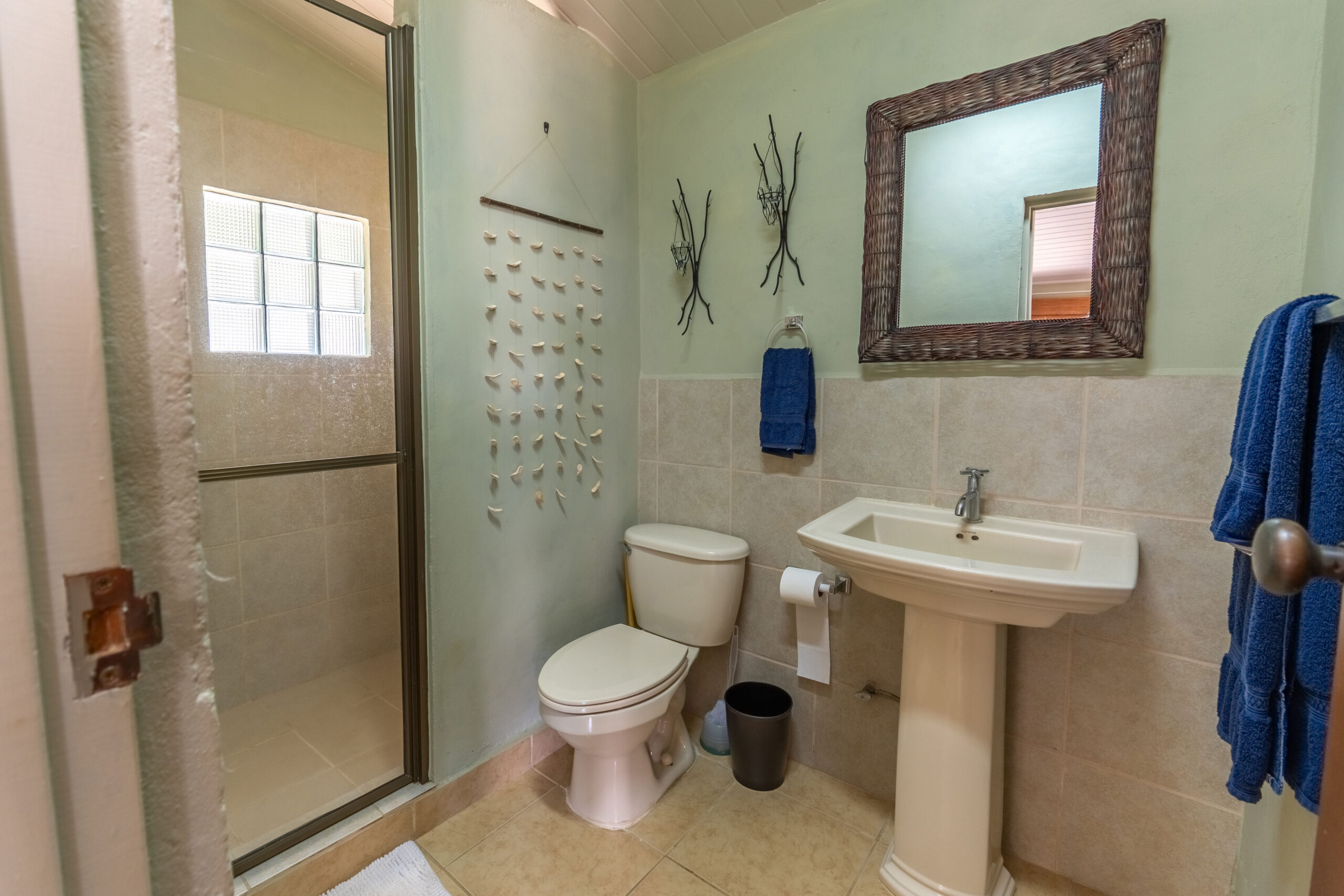 La propiedad principal tiene dos plantas. La planta baja cuenta con un dormitorio, un vestidor y un acogedor baño con bañera. Al lado hay actualmente una oficina, pero también podría usarse como dormitorio.