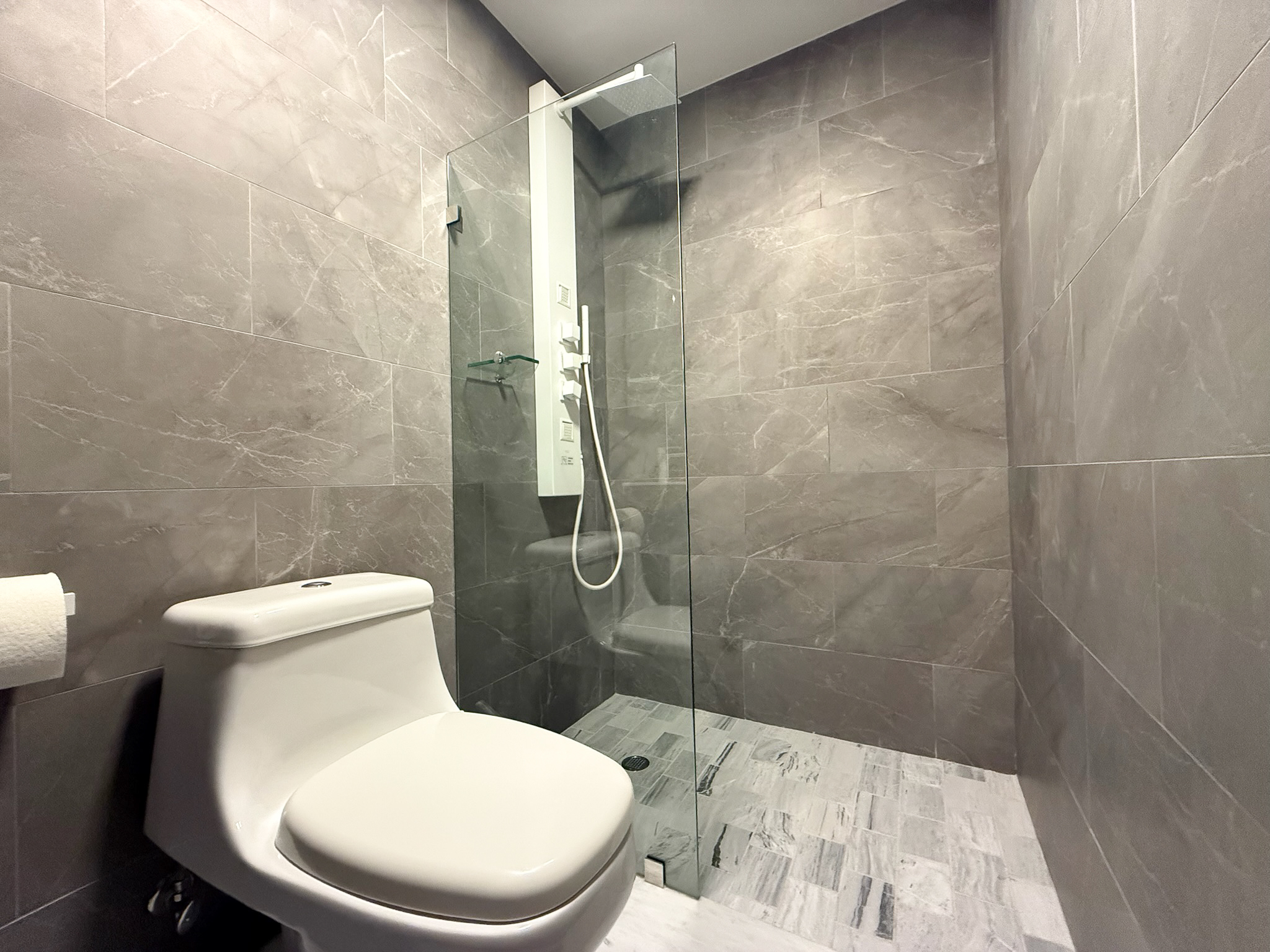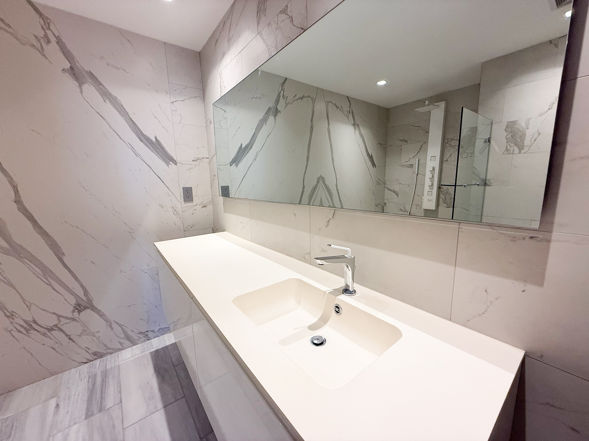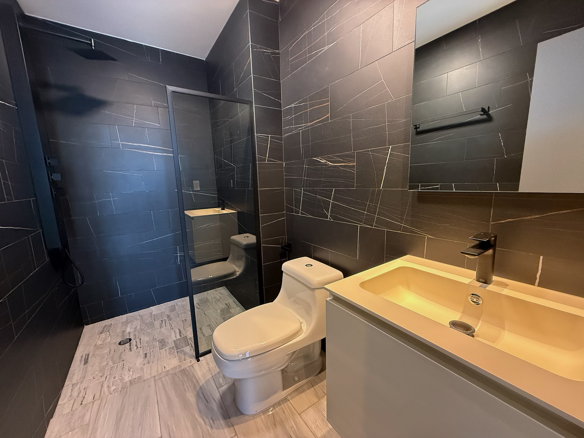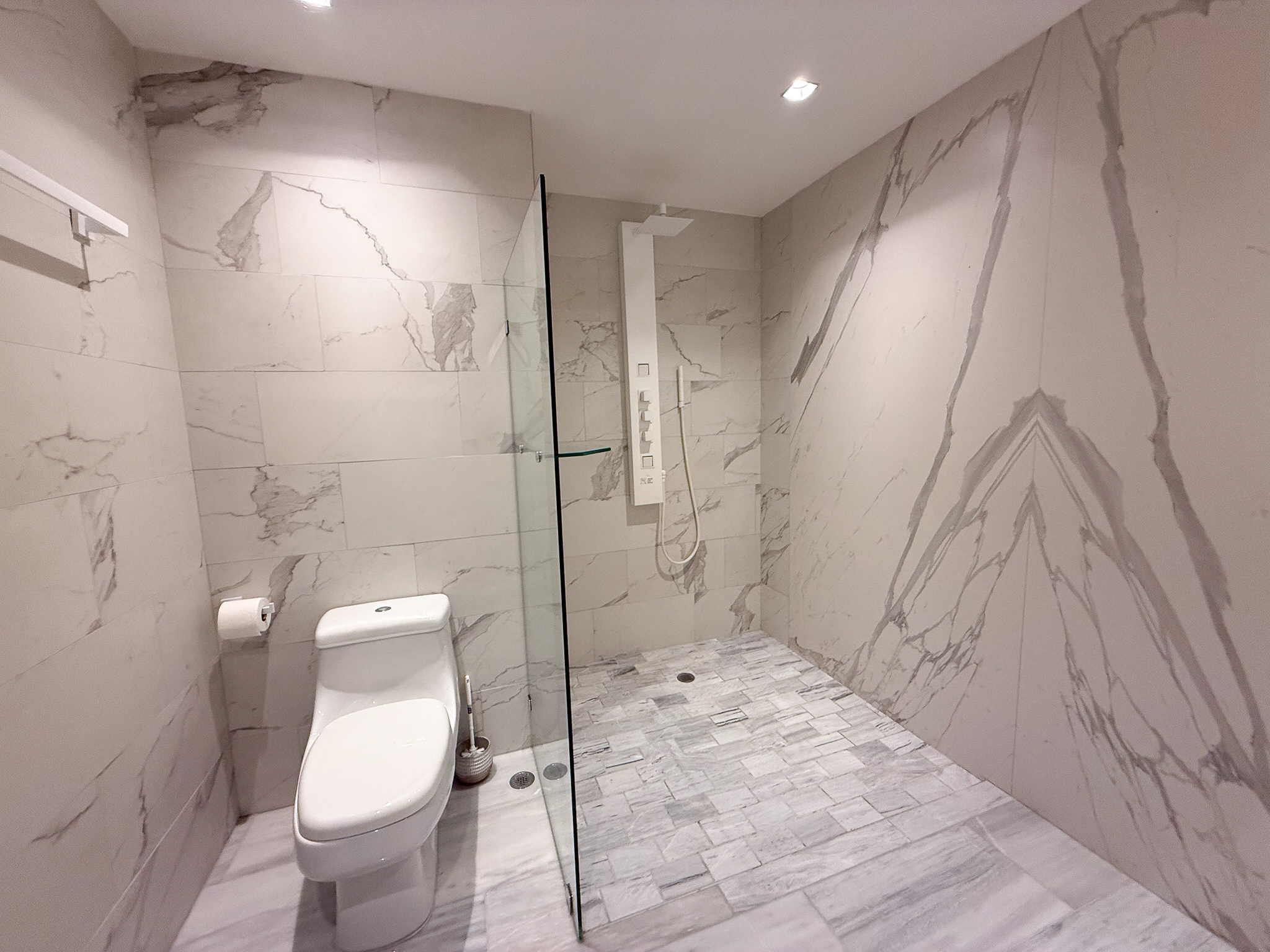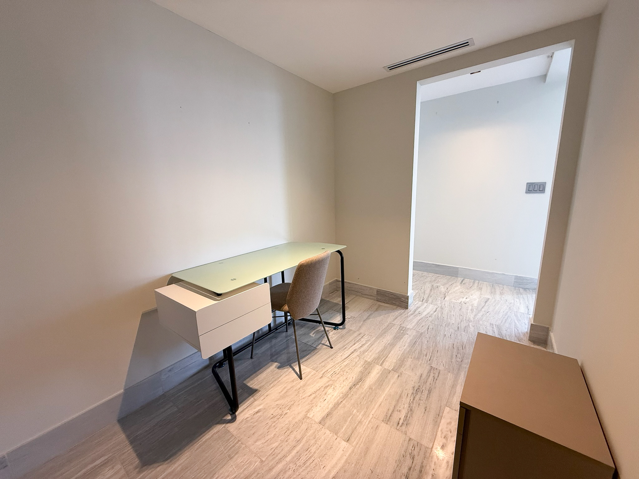 El apartamento cuenta con techos de 10 pies (3 metros) de altura y pisos de mármol en todo el espacio, lo que le da una sensación uniforme y abierta al interior. La cocina, de diseño italiano, incluye sobres de cuarzo y gabinetes hechos a medida, distribuidos en un diseño que facilita tanto la preparación de comidas como reuniones informales. Los tres baños están equipados con accesorios Villeroy & Boch, manteniendo el mismo estándar de calidad en todo el apartamento. Además, incorpora tecnología inteligente que mejora la eficiencia y el control general del espacio.