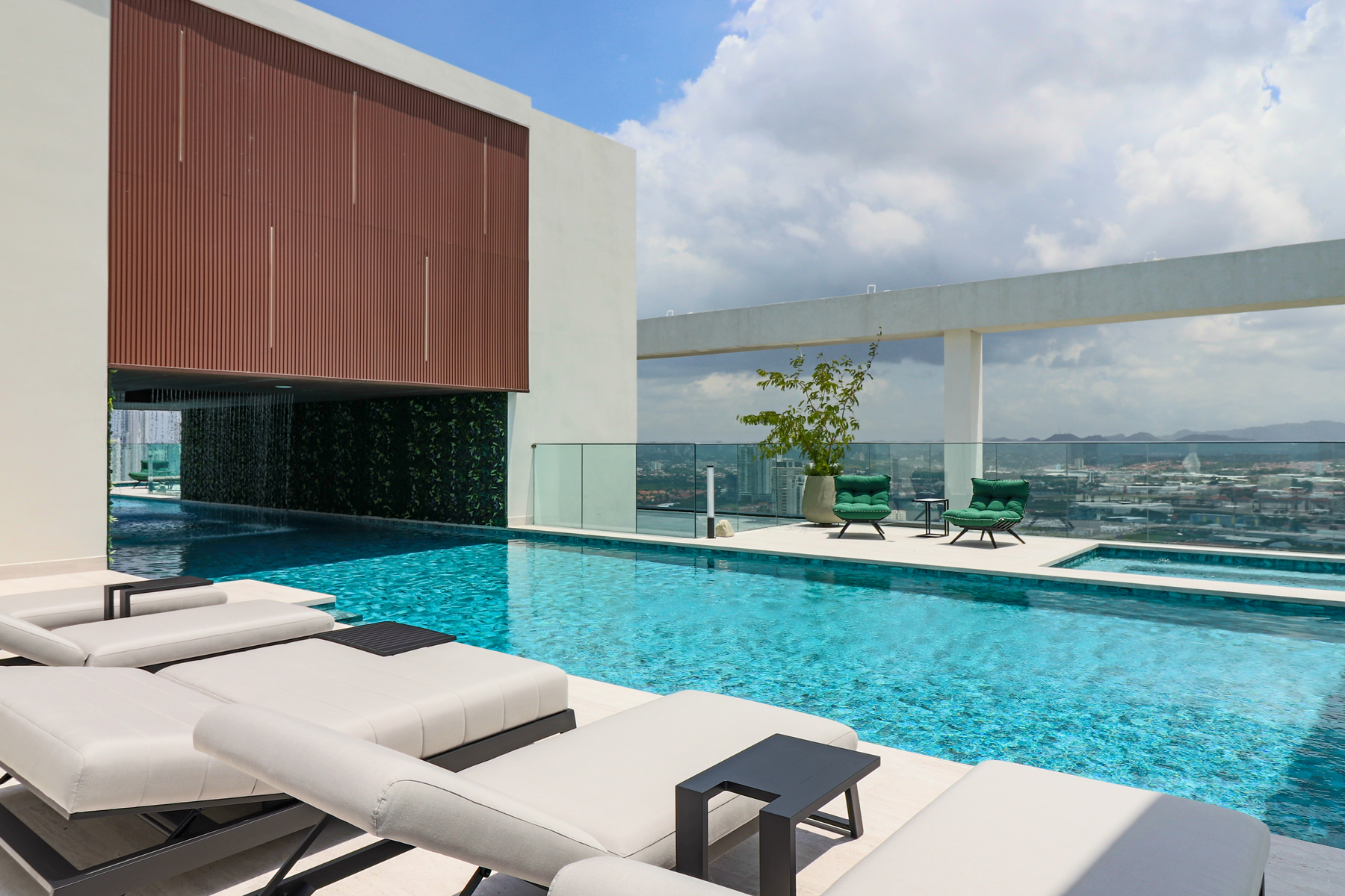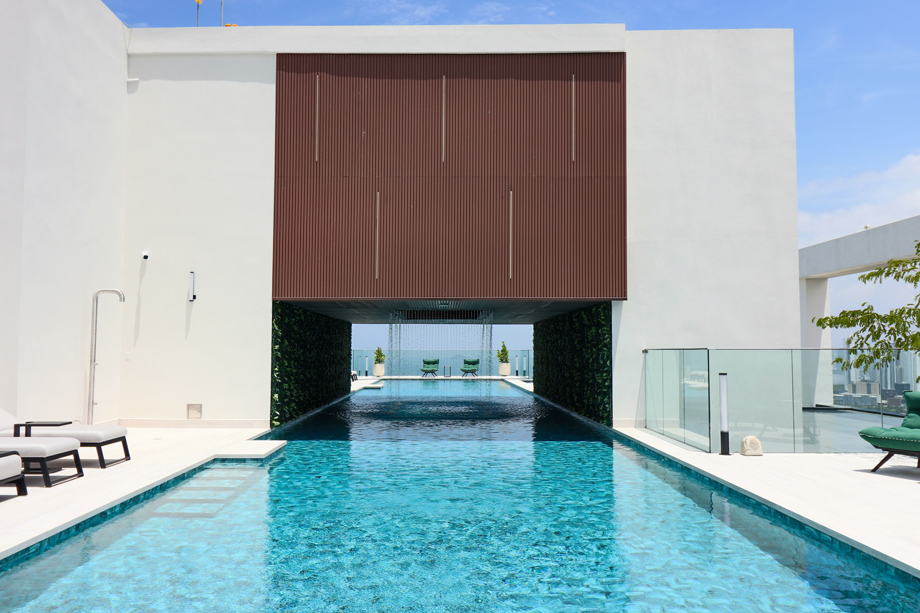 En el techo del piso 46, encontrarás una piscina infinita, piscina para niños, bar de cócteles, cine, barbacoa y más.