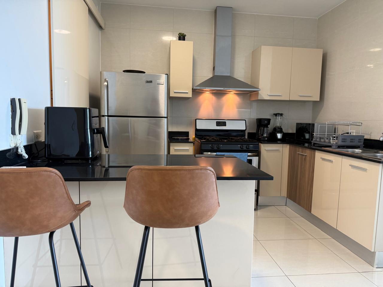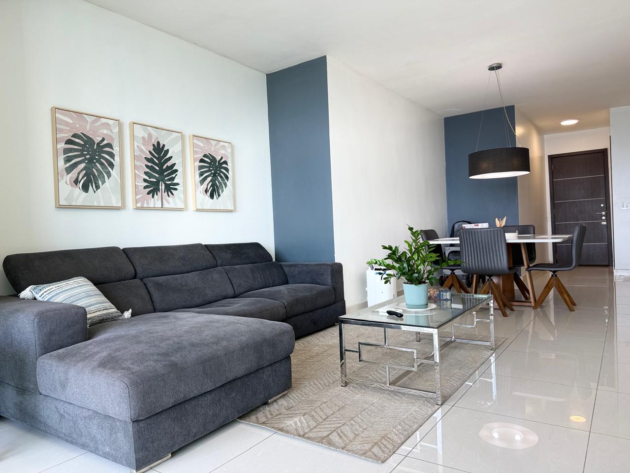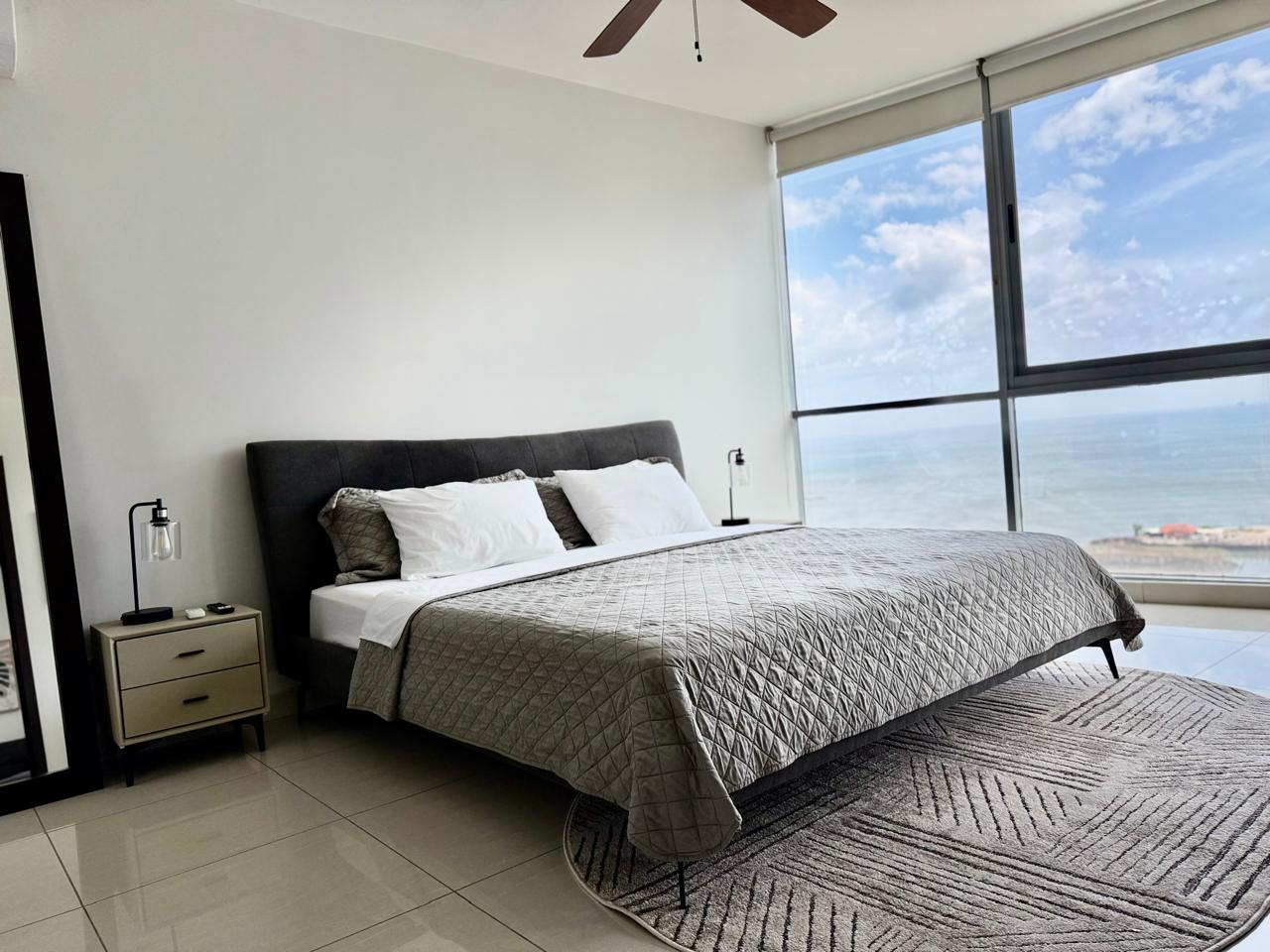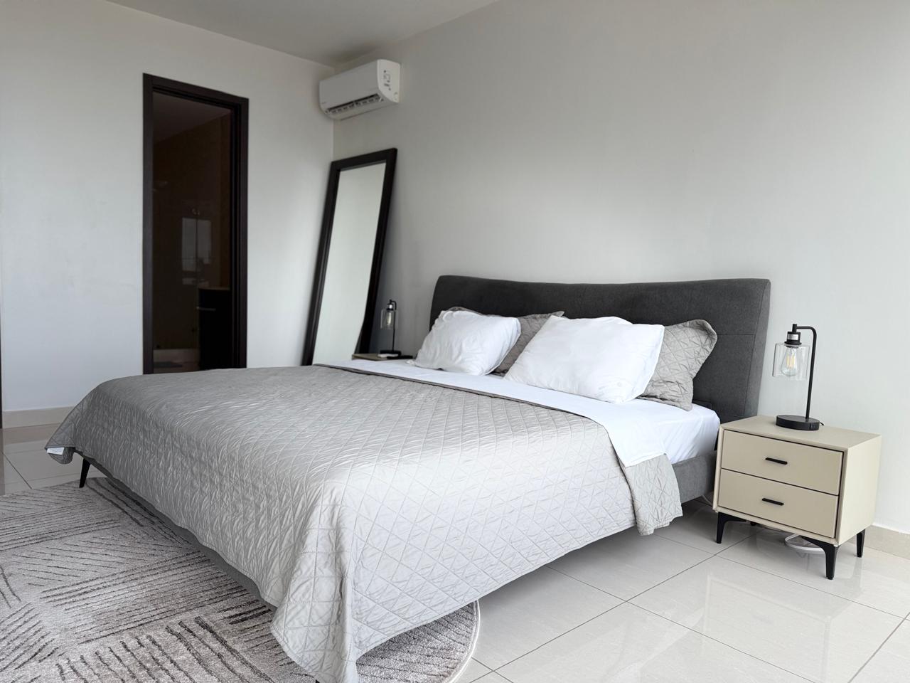 Este apartamento completamente amueblado en alquiler por $1,750 al mes ofrece 98 m² (aproximadamente 1,055 pies cuadrados) de cómodo espacio habitable. La unidad cuenta con una amplia recámara, un baño y un estacionamiento, además de una acogedora sala que se abre a un balcón privado, perfecto para disfrutar de las vistas y la brisa fresca desde el piso 27. La distribución es práctica y elegante, lo que lo convierte en un hogar ideal para profesionales, parejas o cualquier persona que busque una residencia urbana con estilo, lista para mudarse.