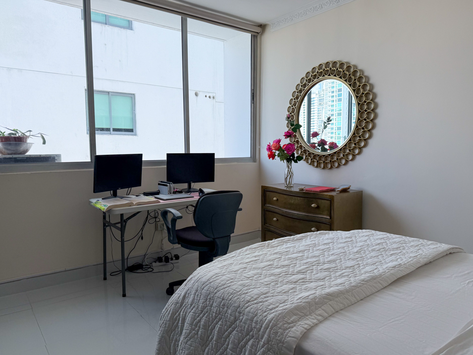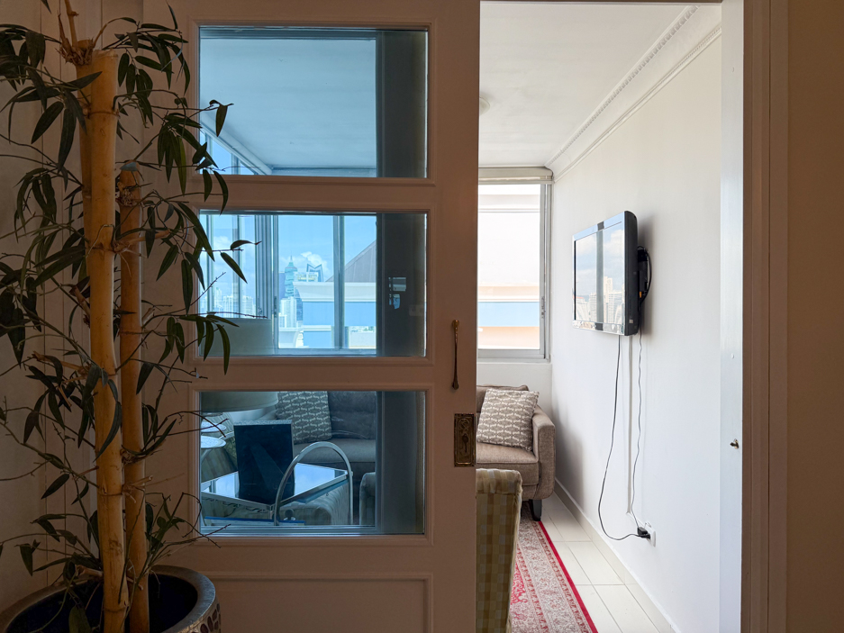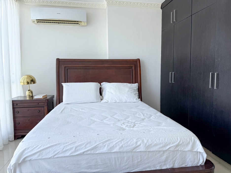 Este apartamento en planta alta en PH Waterview ofrece 123 m² de cómodo espacio habitable con vistas panorámicas y una distribución bien pensada. Cuenta con 2 dormitorios y 2 baños, una amplia sala de estar y comedor, una cocina moderna y cerrada, además de un cuarto de servicio con baño propio para mayor comodidad. Incluye plaza de aparcamiento privado.