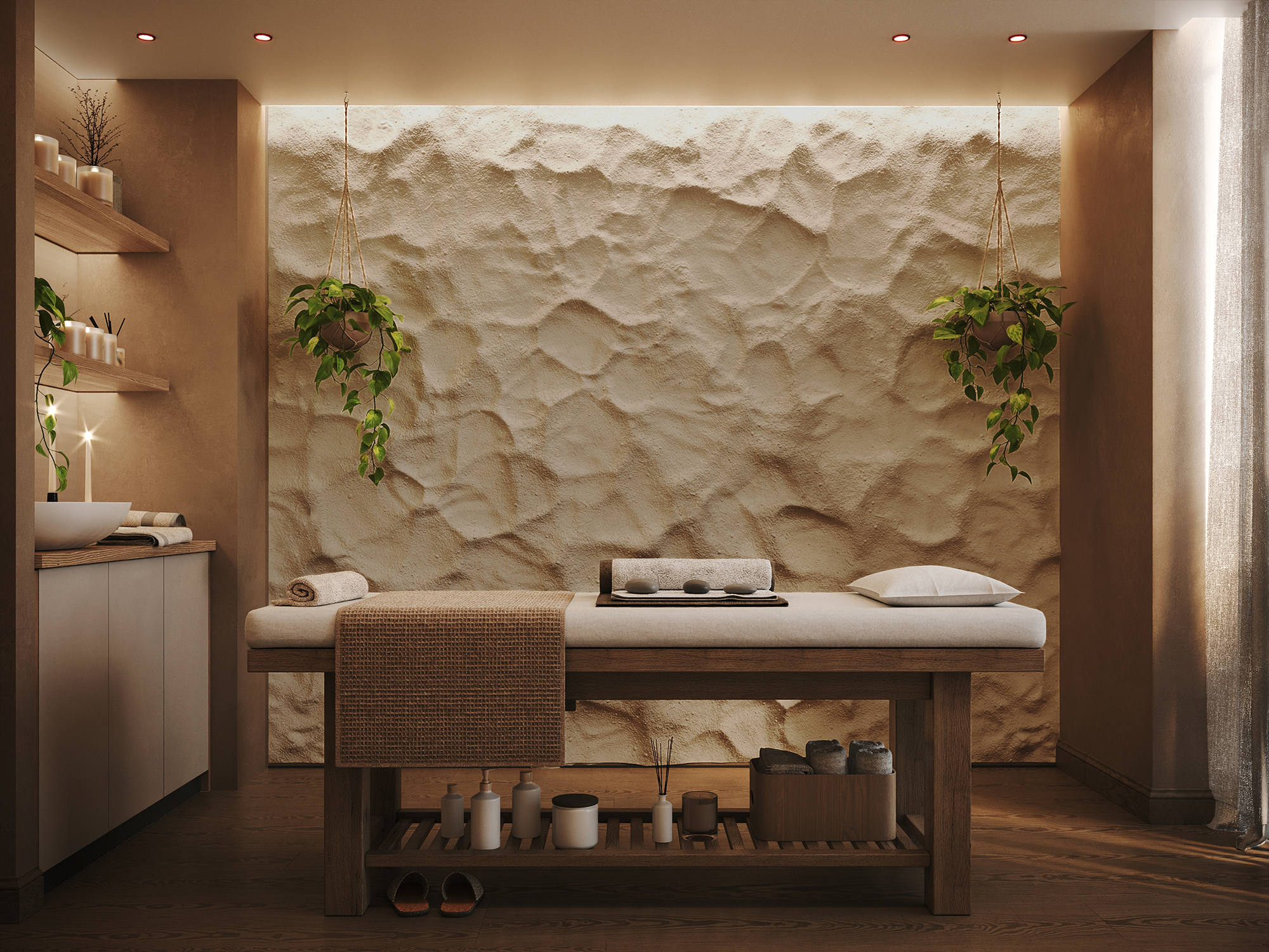 A dedicated service area includes a laundry space and service bathroom, helping keep daily routines organized and separate from the main living areas.