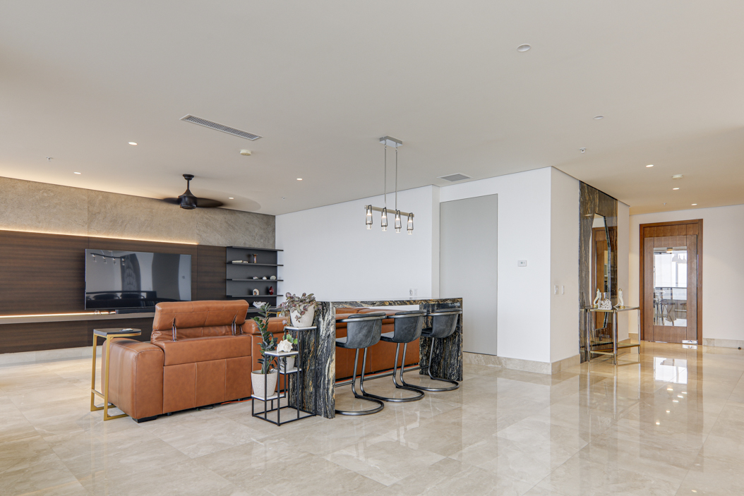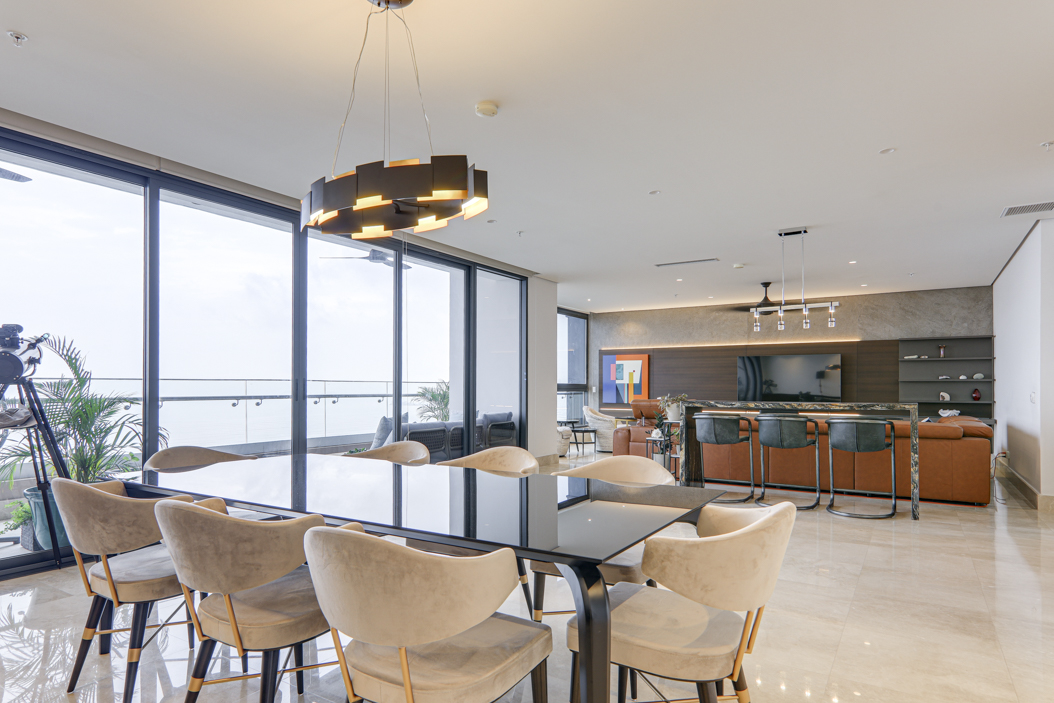 The living room and dining area offer stunning sea views, whilst the family room provides a separate space for relaxation and entertainment. You will love the large balcony where residents can enjoy the fresh ocean breeze and take in the stunning colors of Panama’s skies!
