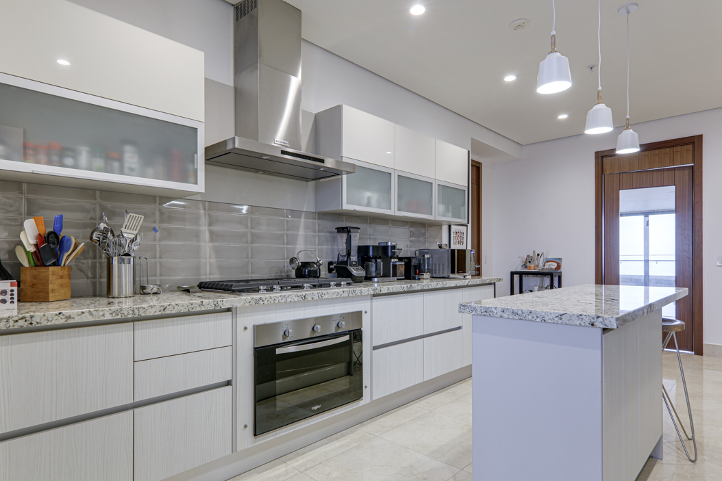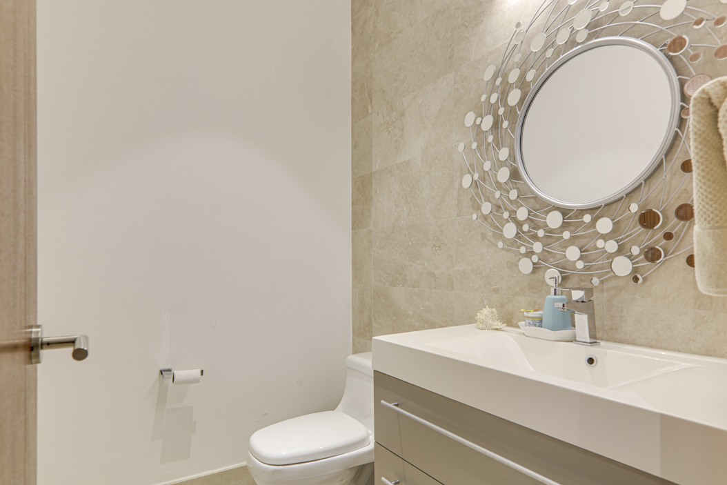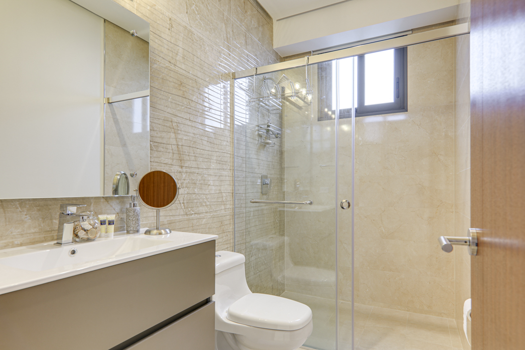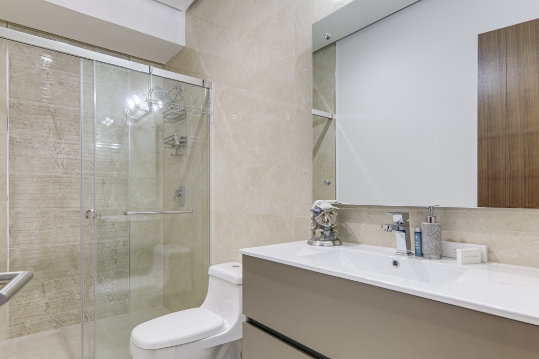 The condo’s three bedrooms each have their own en-suite bathroom and walk-in closets, providing privacy and comfort for the entire family.