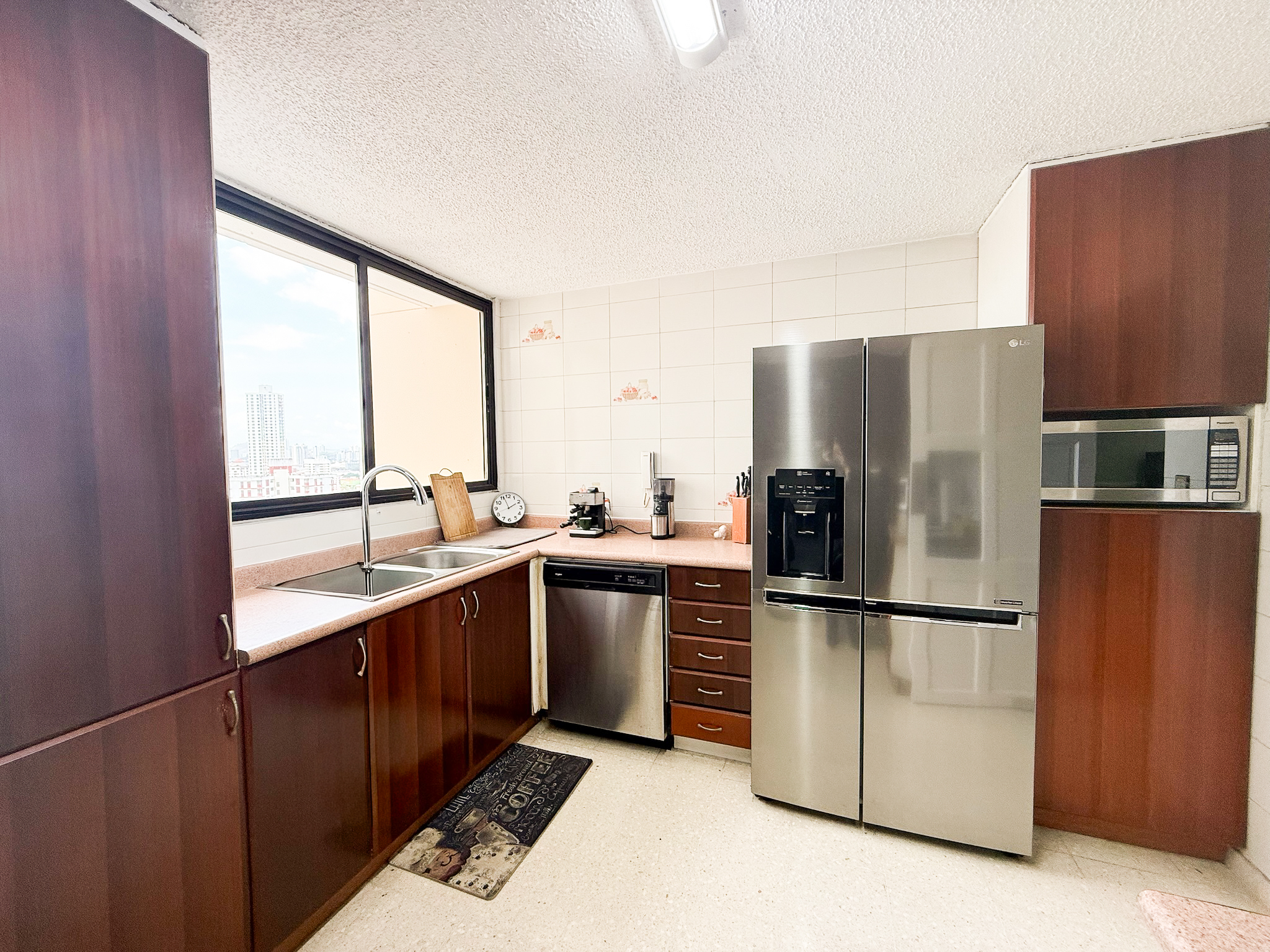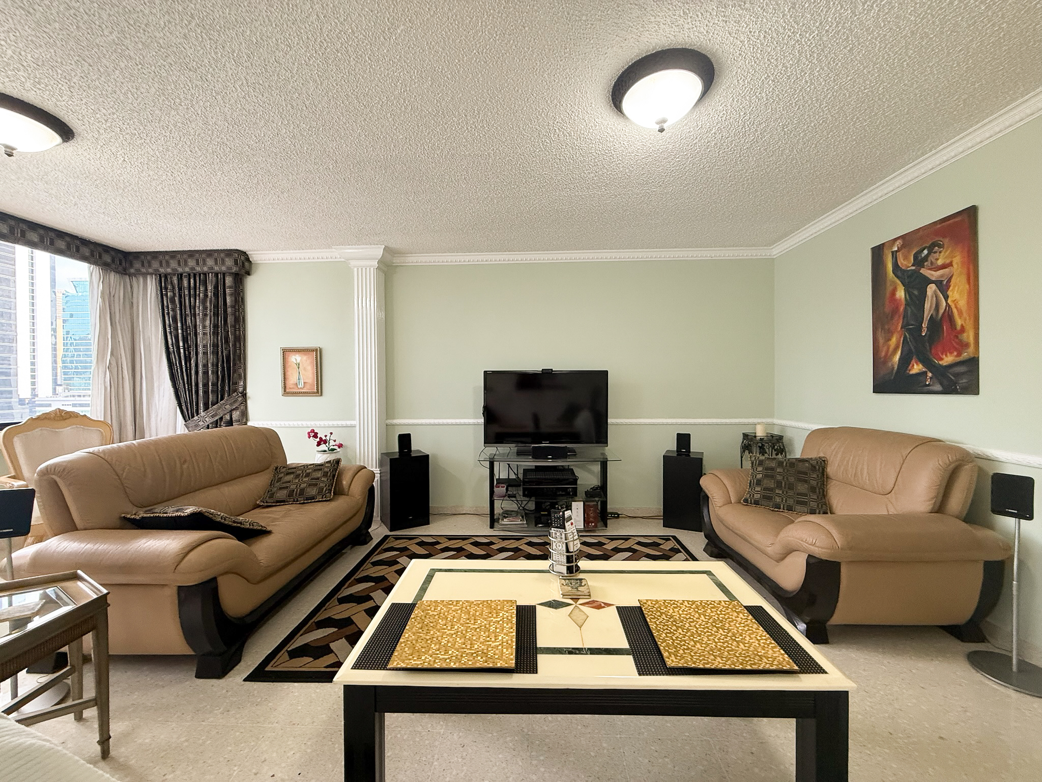 Set in the center of Obarrio near Panama’s financial district, this older and very lovely condo stands out for a layout that’s practical and easy to navigate.