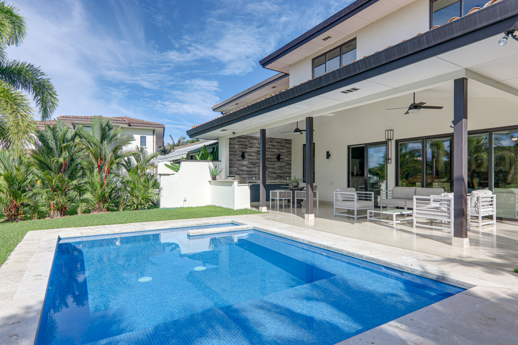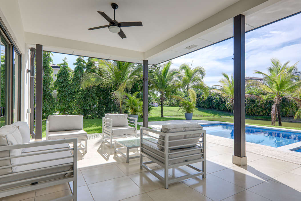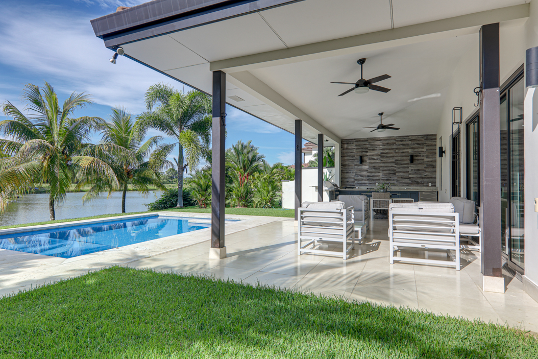 Located on the edge of a large lake along the Buenaventura championship golf course, this villa offers plenty of space and privacy. The open kitchen and its enormous floor-to-ceiling windows allow the home to be filled with natural light throughout the day.