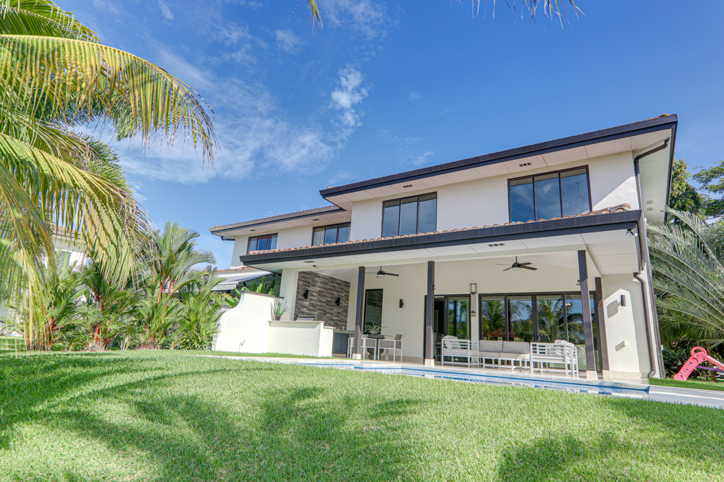 Image of house with trees ,pool and mountain in Playa Malibu Gorgona