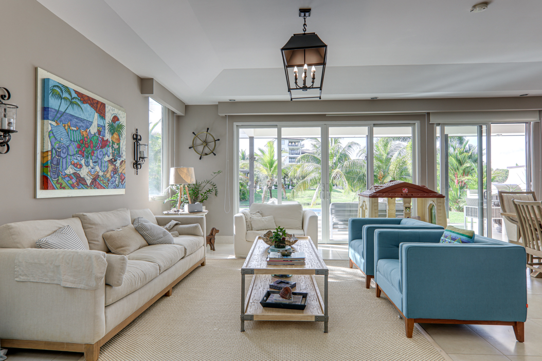 High ceilings and a well designed floor plan provide a light beach feel to this already spacious living space.