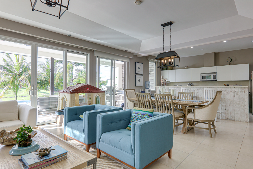The abundance of recessed lighting keep the villa feeling warm and cozy during the evening.