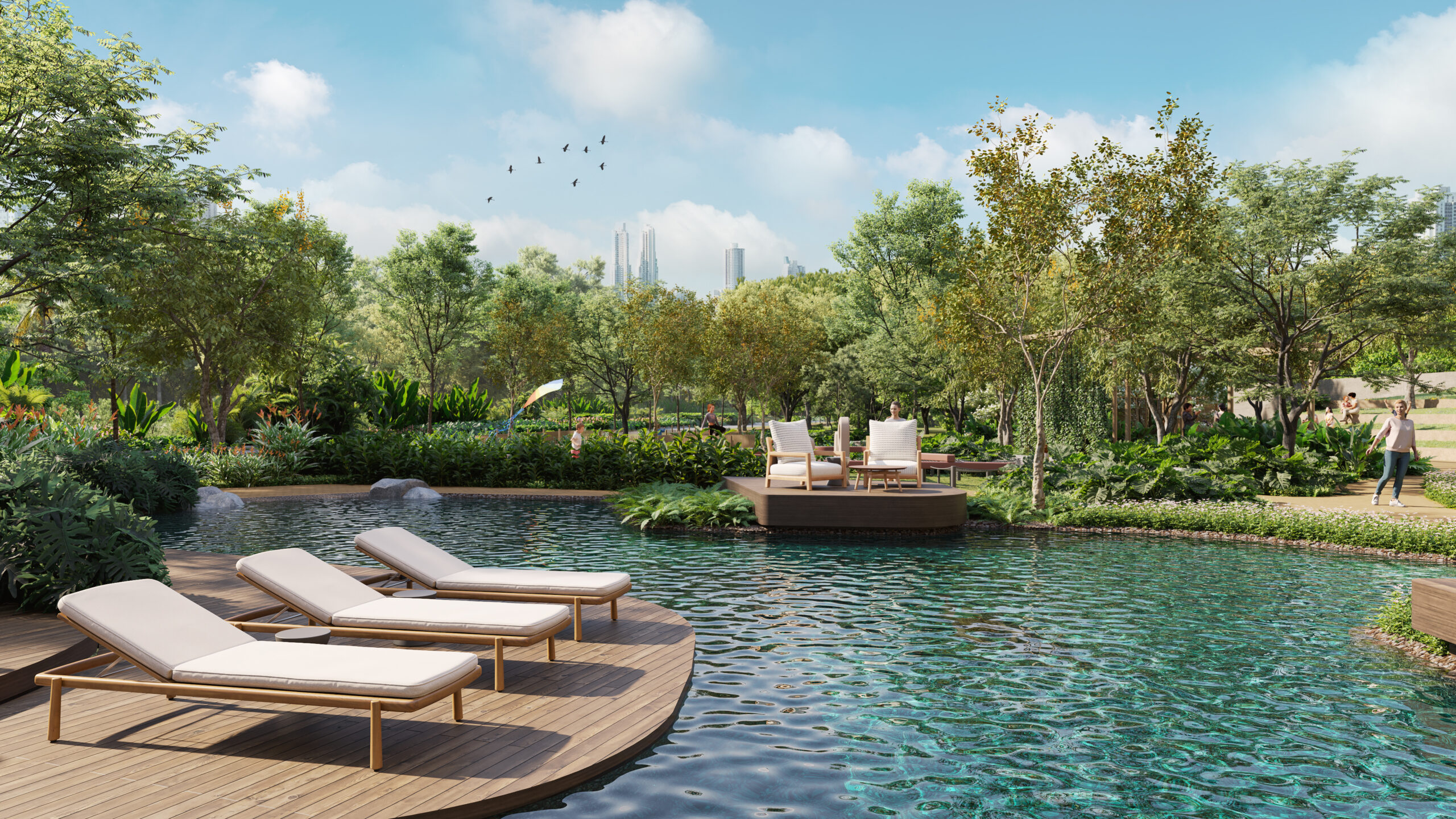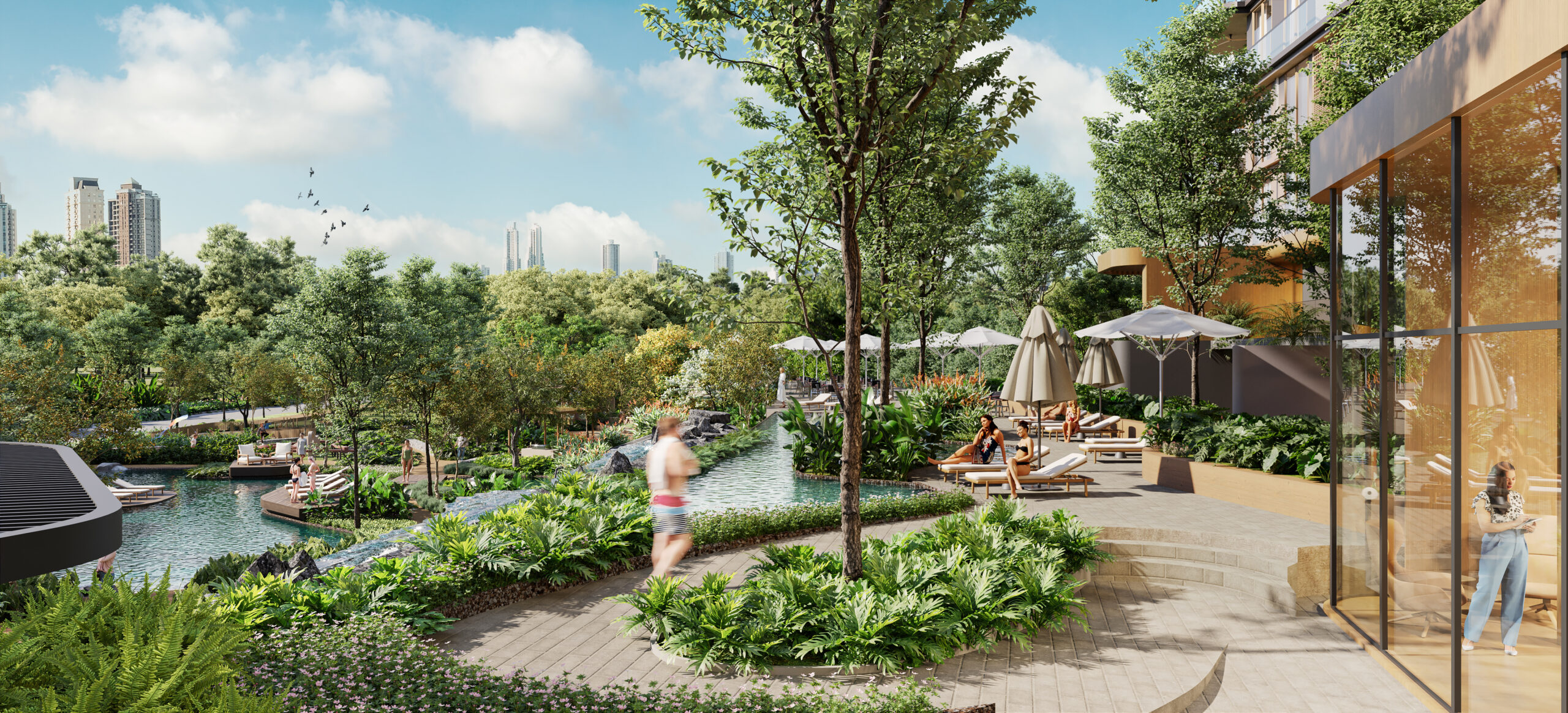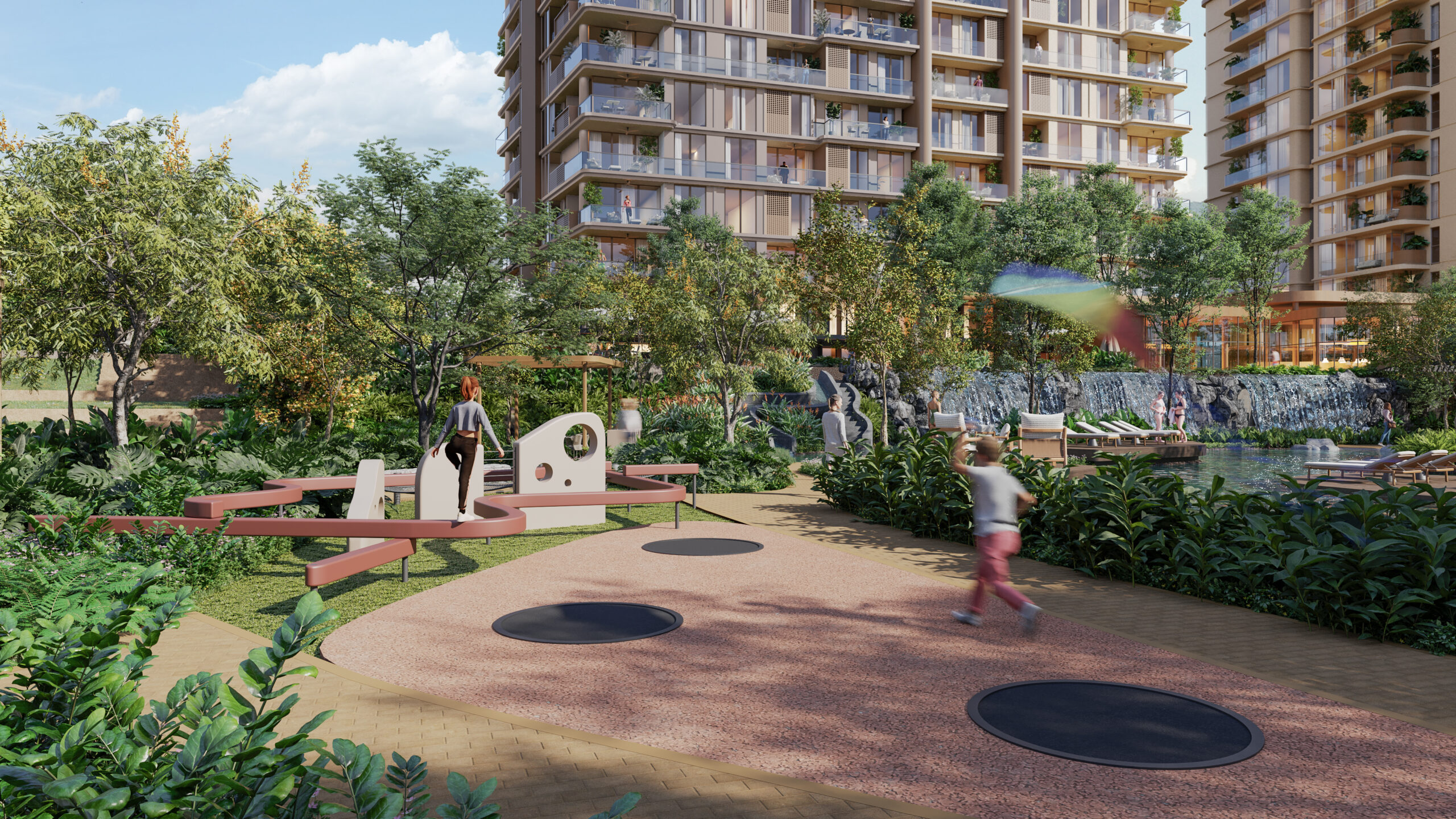 Residents will have access to more than 45 shared amenities. These include lagoon-style pools with terraces and waterfalls, a full gym, wellness area with jacuzzi, sauna, and steam room, as well as a cinema, golf simulator, and demo kitchen. Families will find dedicated kids’ and teens’ areas, while pet owners have their own facilities. Concierge and home-care services are available for added convenience.