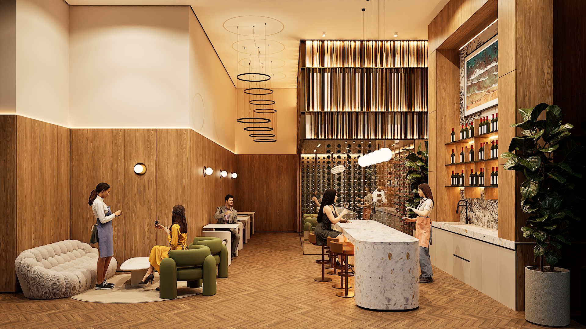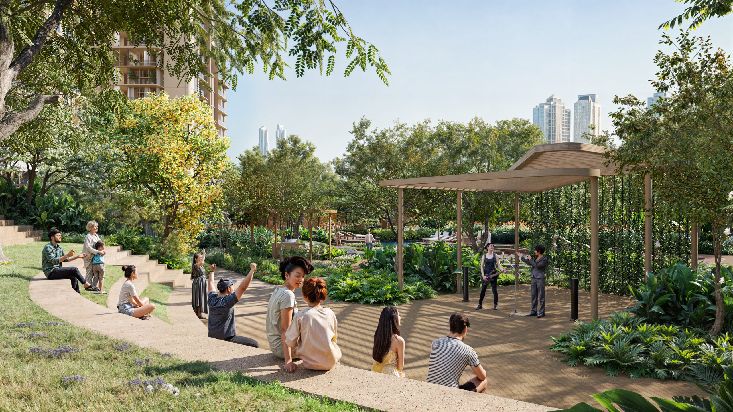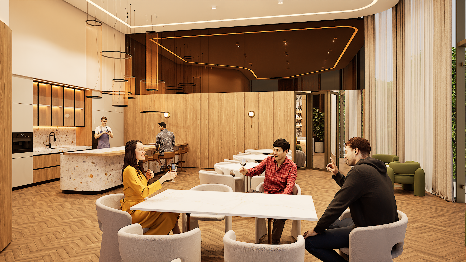 Residents will have access to more than 45 shared amenities. These include lagoon-style pools with terraces and waterfalls, a full gym, wellness area with jacuzzi, sauna, and steam room, as well as a cinema, golf simulator, and demo kitchen. Families will find dedicated kids’ and teens’ areas, while pet owners have their own facilities. Concierge and home-care services are available for added convenience.