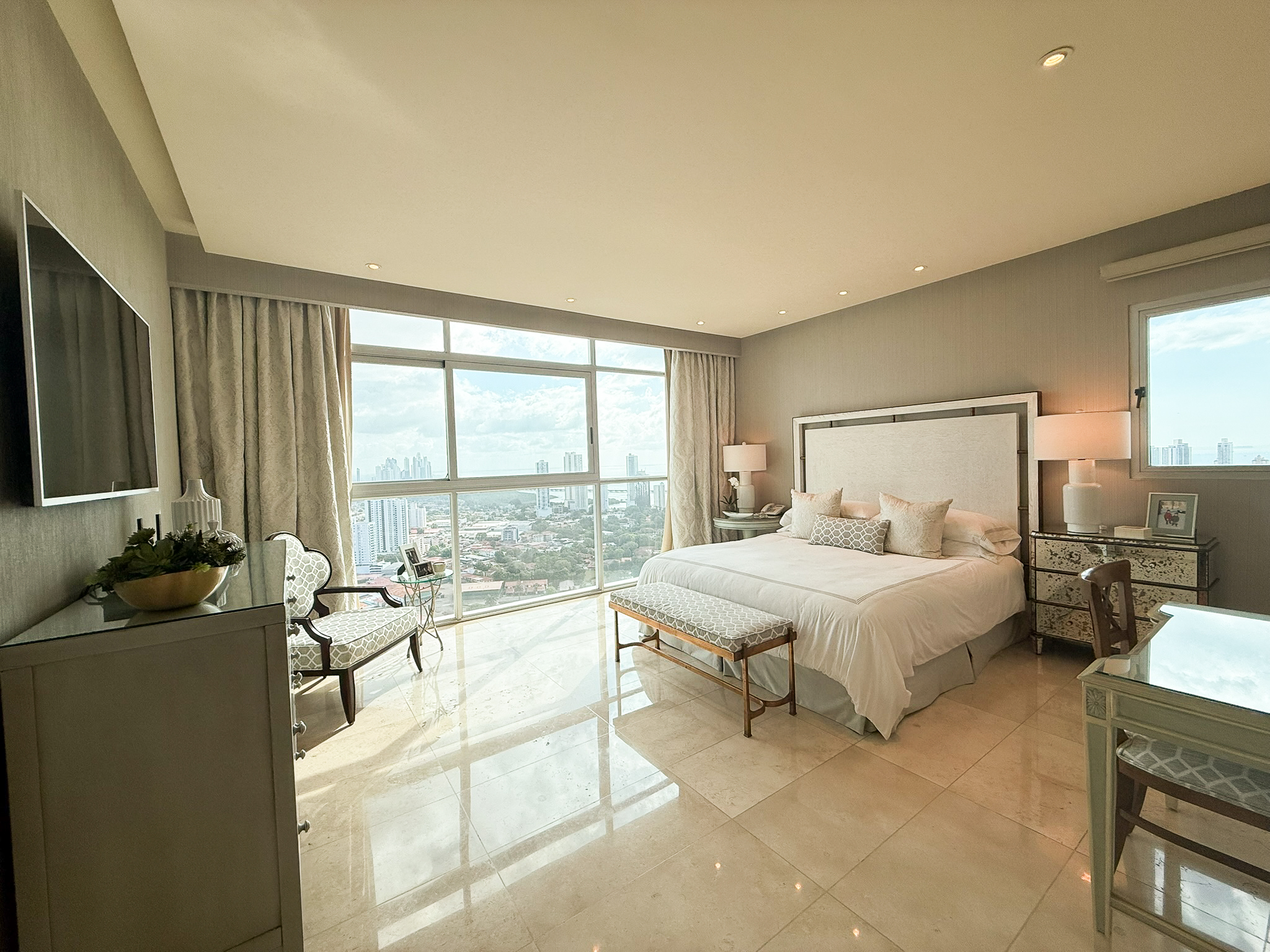 Are you looking for a luxury residence in one of Panama City’s most central residential areas? This condo for sale in Arboleda is a rare find. With 620 m² (6,673 ft2) of interior space, this condo for sale in Arboleda focuses on space and layout in a central San Francisco setting. From the moment you walk in, it’s clear the space was carefully thought out. Custom crown molding runs throughout the condo. The 3M window film keeps the home feeling cool even in the middle of the day.