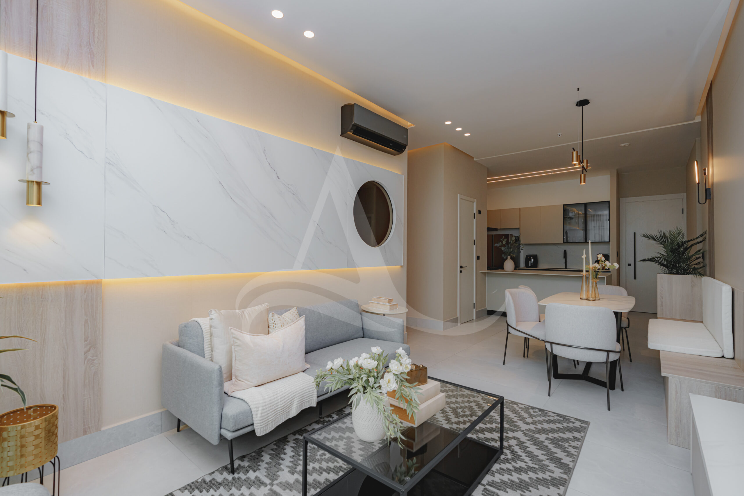 Model B at Aquapoint places you right in the middle of it. The main living area brings together the kitchen, dining, and seating space in a way that’s easy to use, whether you’re keeping things quiet or having a few people over. From higher floors, partial sea views add a sense of openness without needing extra space.