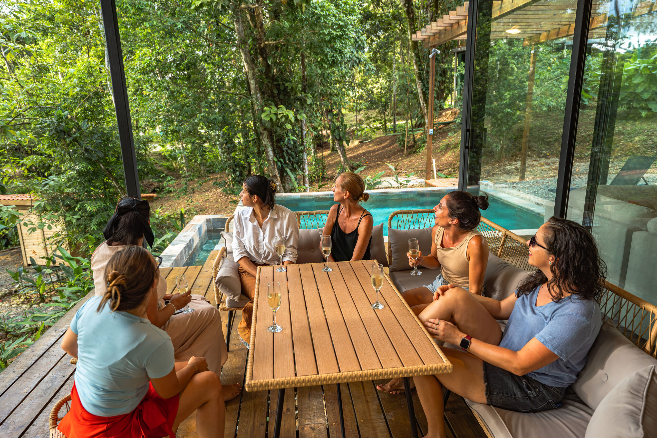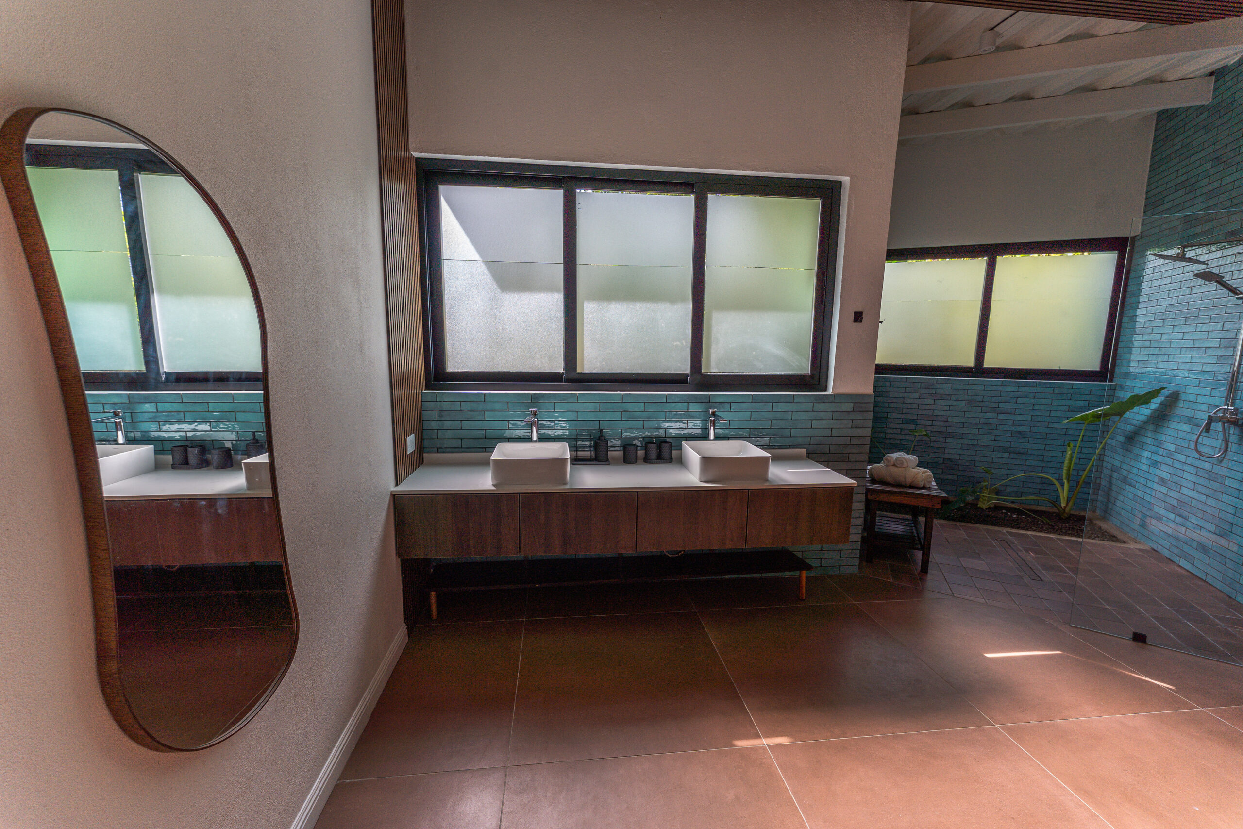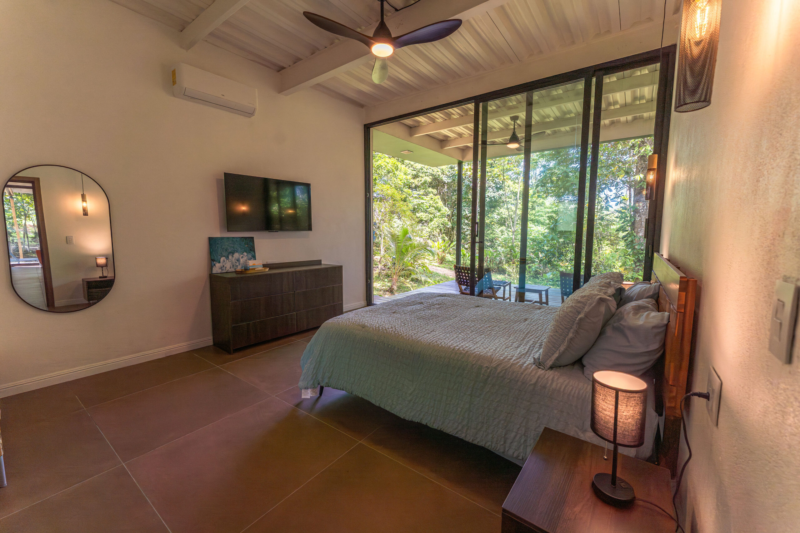 The kitchen includes a pantry and flows into the living and dining area, which opens up to a massive covered deck. Out back, there is a private pool surrounded by jungle. No neighbors in sight. No road noise. Just birdsong and the occasional howler monkey.