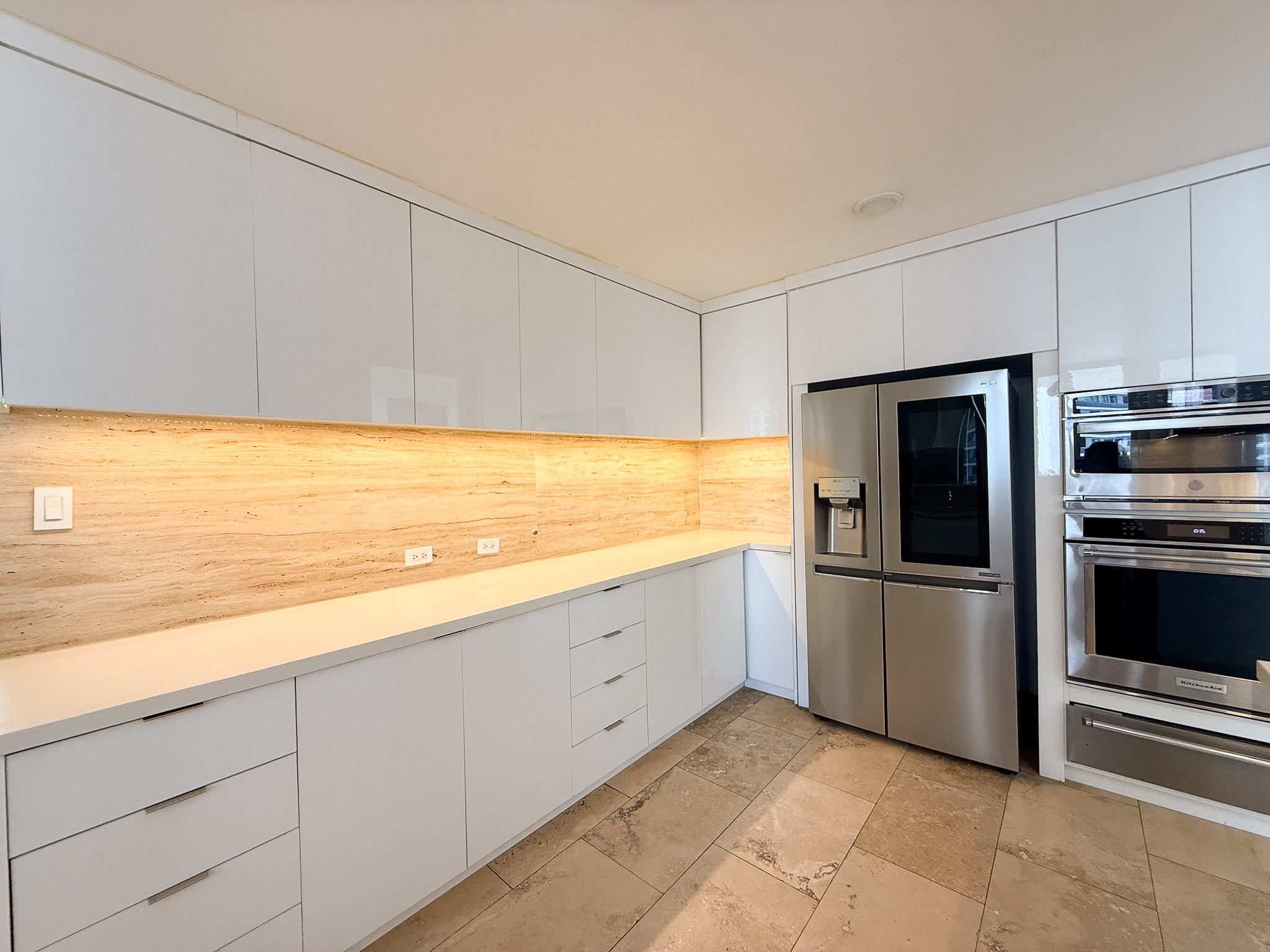 The kitchen is spacious and includes a gas stove, refrigerator, dishwasher, and plenty of storage. It connects directly to the living and dining area. Just off the kitchen, there’s a laundry area with a gas washer and dryer, along with the maid’s quarters.
