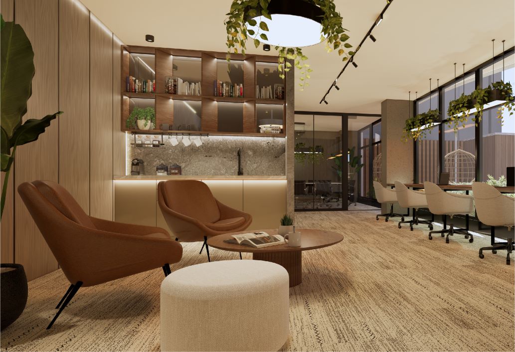 Common areas follow a cohesive design approach. This creates a consistent aesthetic and clear spatial organization throughout the project.