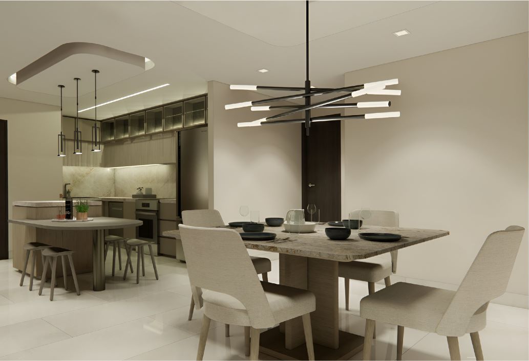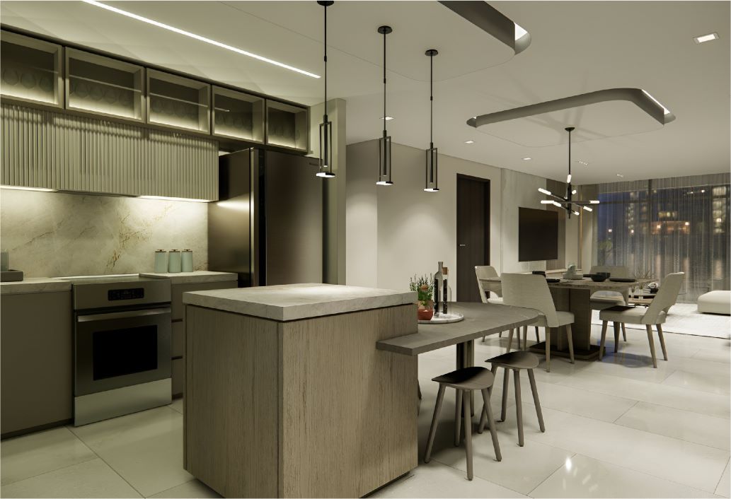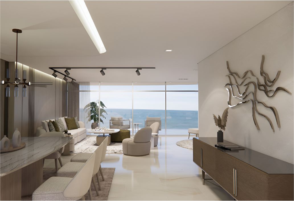 Enjoy ocean views in one of Punta Pacifica’s waterfront buildings. Model 4 at Allure at Punta Pacifica offers 119.14 m² with a well-planned layout. The open living and dining area connects naturally to a modern kitchen, creating a comfortable main living space for relaxing or entertaining.